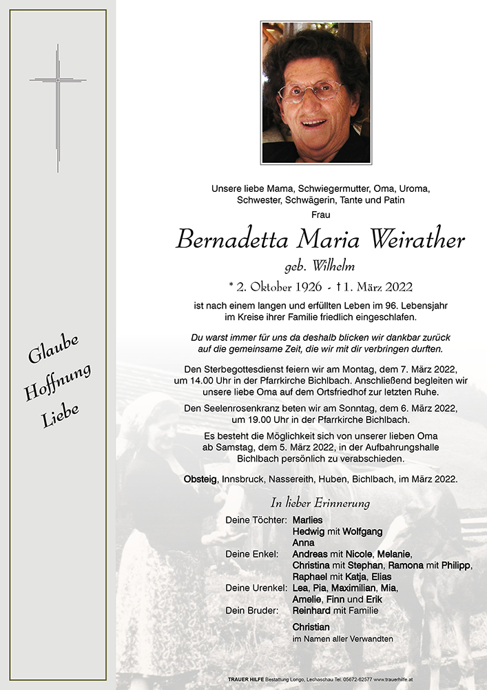Pfiat Di, liebe Mama, machs guat, deine Anna