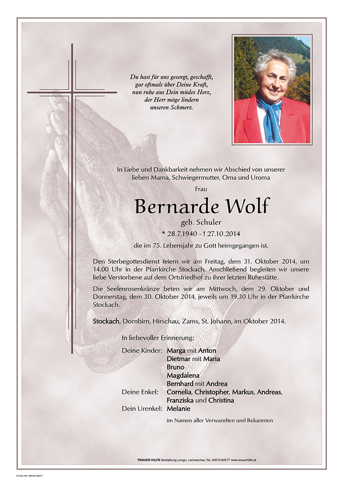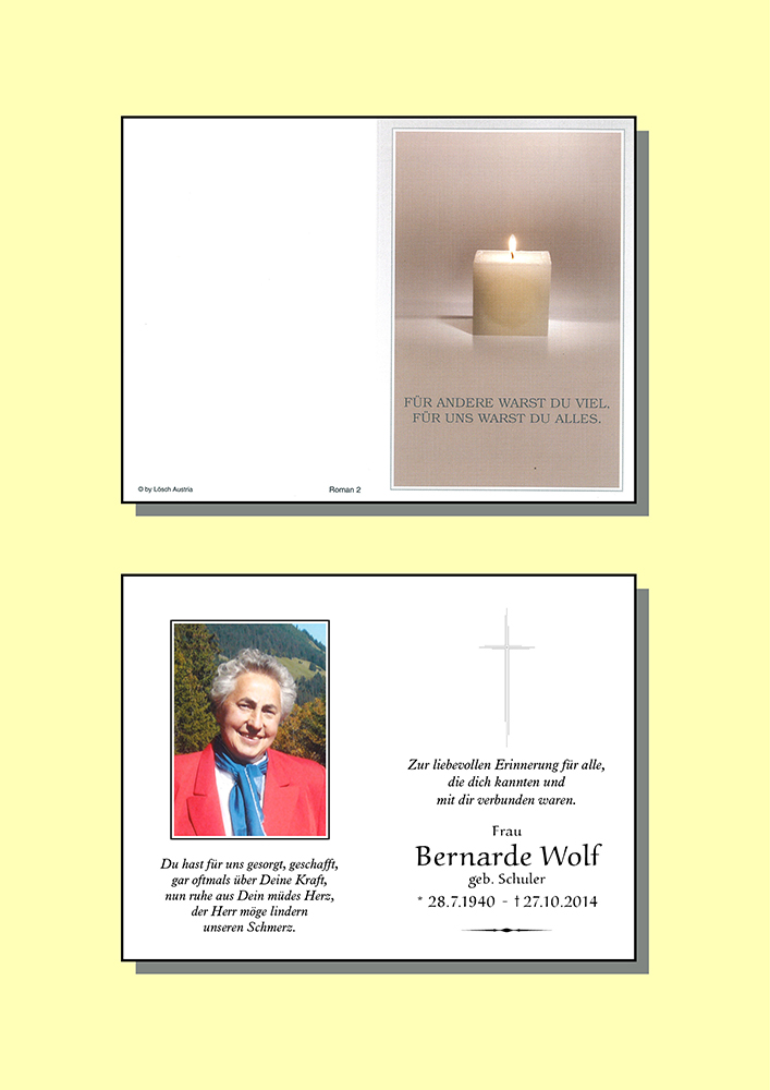 Kondolenzbuch für Bernarde Wolf