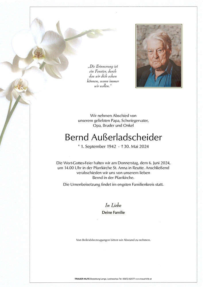 Liebe Trauerfamilie! Mein aufrichtiges Beileid zum Tod eures Vaters. Ich habe Bernd vor Jahren sehr schätzen gelernt und erinnere mich gern, wie er seine Erfahrung und sein Wissen weitergegeben hat. Möge er in Frieden ruhen.
