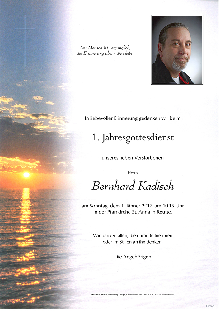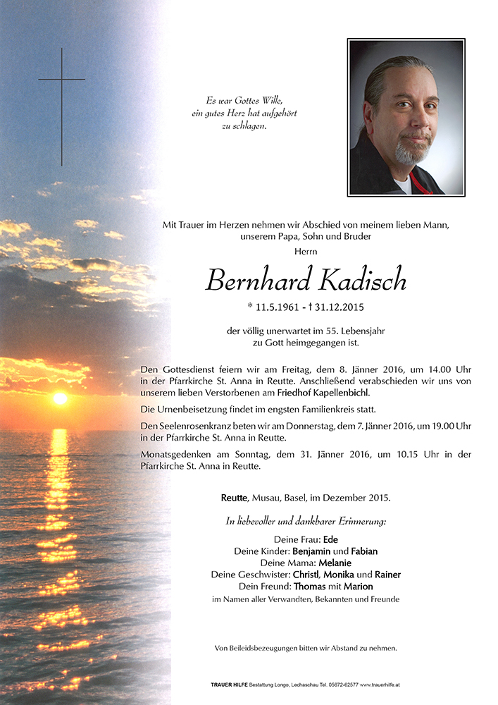 Kondolenzbuch für Bernhard Kadisch