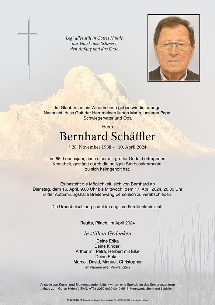 Kondolenzbuch für Bernhard Schäffler