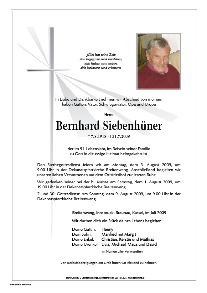 13.12.1901 31.07.2009 Breitenwang Bernhard Siebenhüner Action Parte Gedenkkerzen Kondolenzen Jahrestag Parte Gedenkkerzen Kondolenzen Jahrestag Parte herunterladen Gedenkkerzen für Bernhard Siebenhüner 1 Eintrag Kerze anzünden Ruhe in Frieden Ihre Gedenkkerze fürBernhard Siebenhüner Ihr Name* Farbe auswählen Ihre Nachricht oder Name* E-Mail-Adresse* Mit dem Klicken auf "Kerze anzünden" erklären Sie sich mit unseren Datenschutzbestimmungen einverstanden. Kondolenzbuch für Bernhard Siebenhüner 0 Einträge Kondolenz verfassen Ihr Abschiedsgruß an Bernhard Siebenhüner Ihr Name* E-Mail-Adresse* Ihre Nachricht* Mit dem Klicken auf "Gruß absenden" erklären Sie sich mit unseren Datenschutzbestimmungen einverstanden. Jahrestag herunterladen
