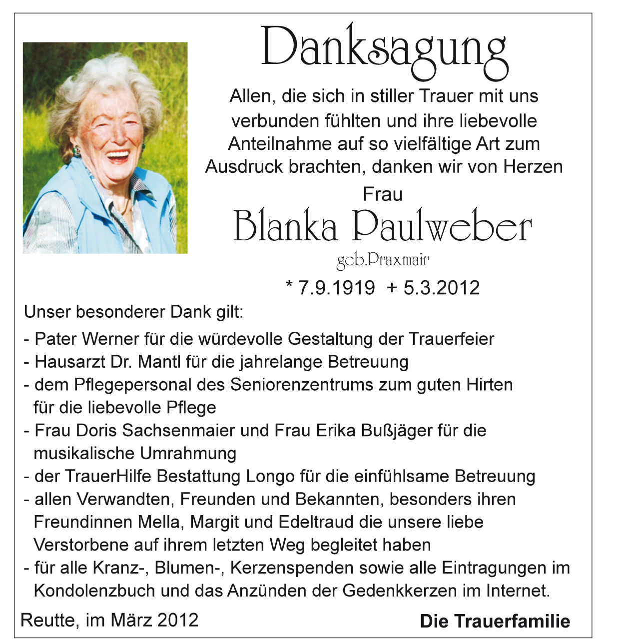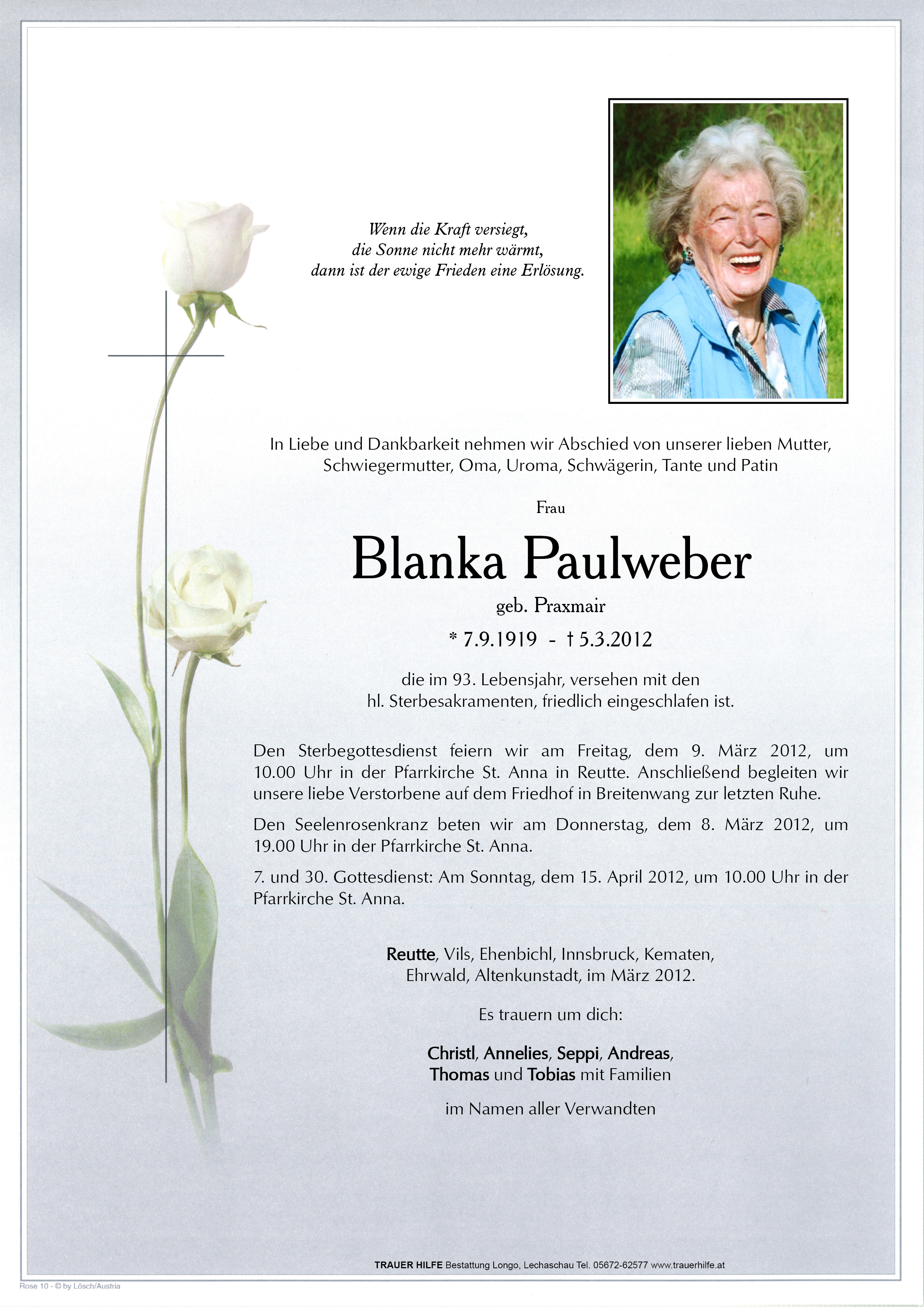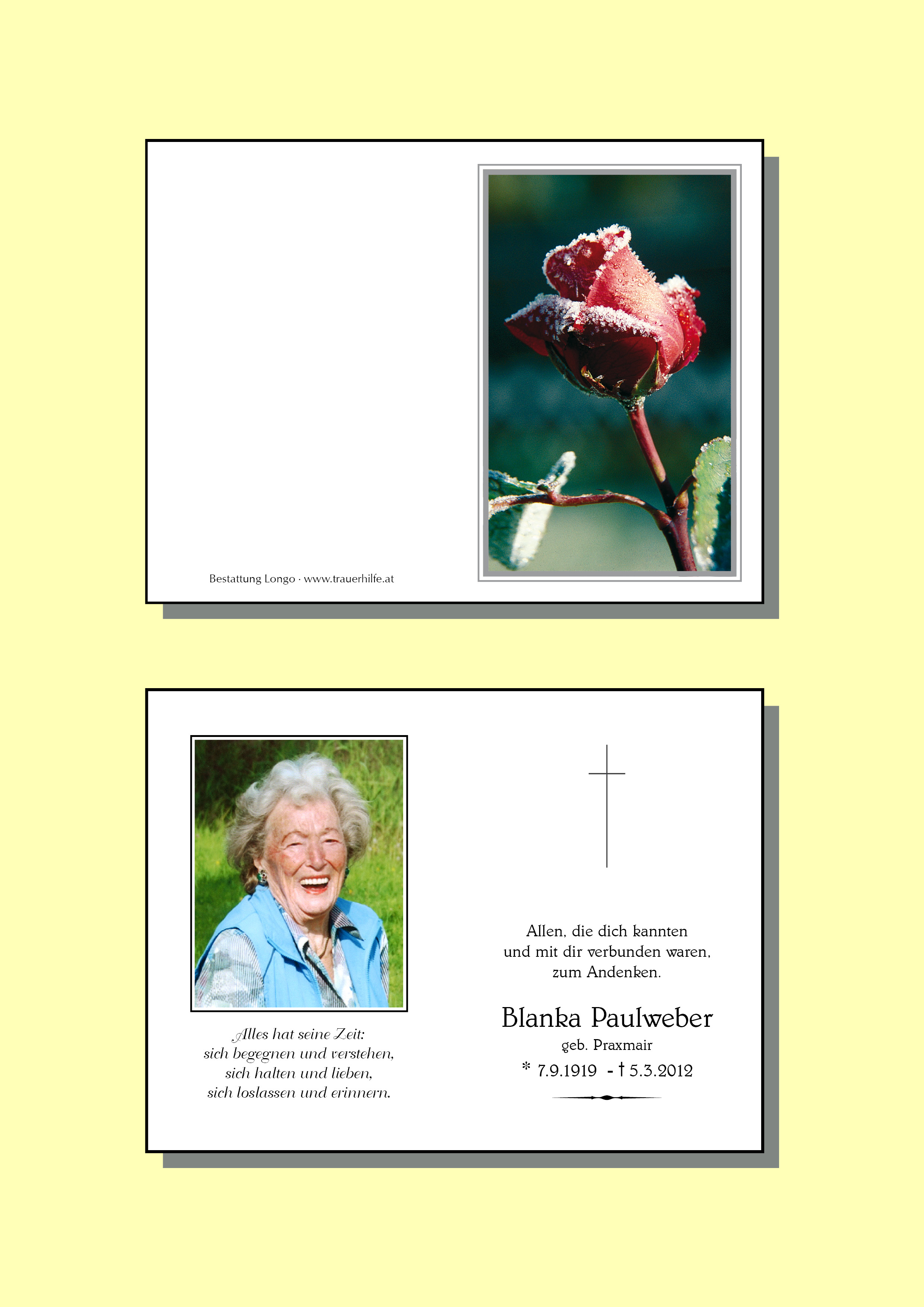 Kondolenzbuch fĂŒr Blanka Paulweber
