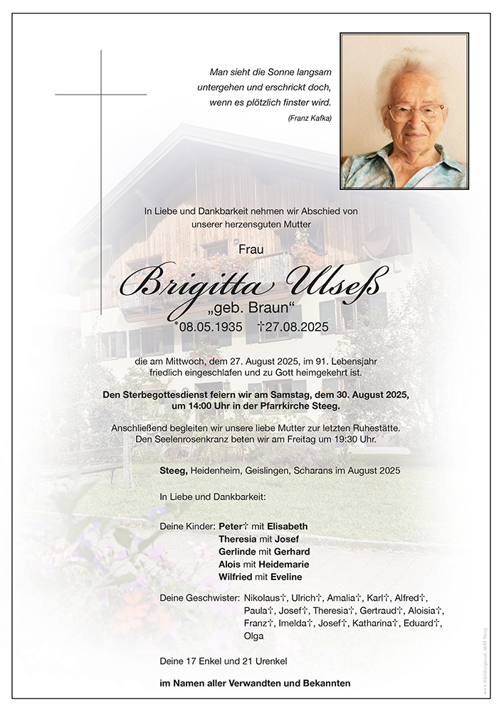 Kondolenzbuch für Brigitta Ulseß