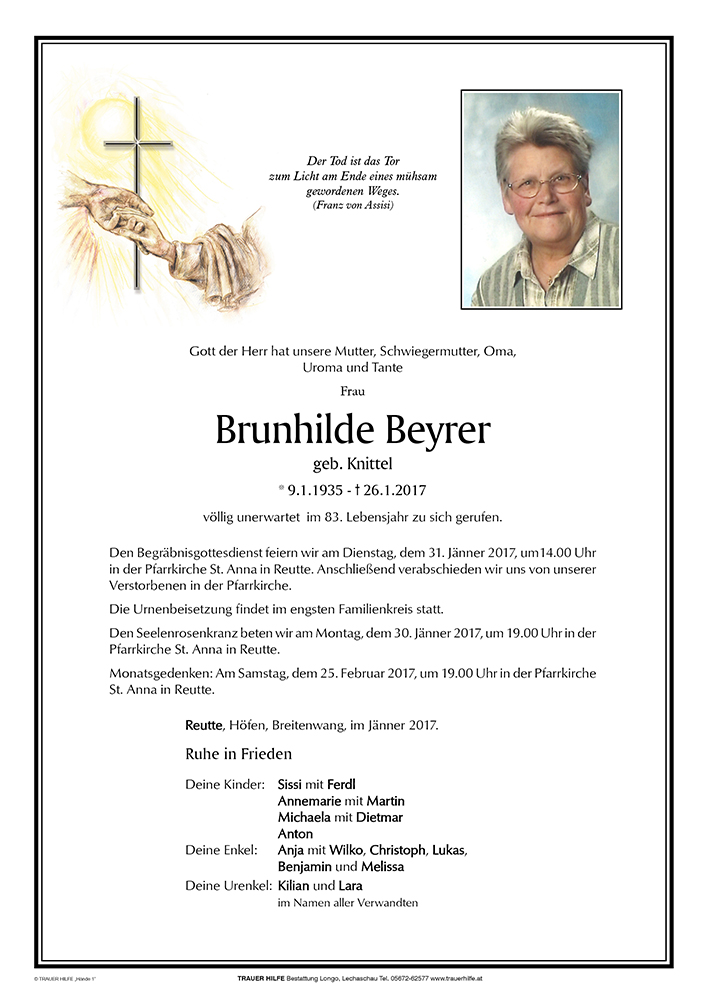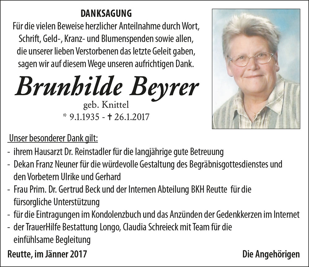 Kondolenzbuch für Brunhilde Beyrer