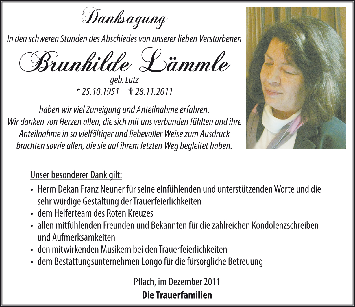 Kondolenzbuch für Brunhilde Lämmle
