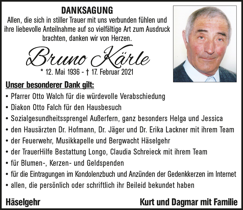 Kondolenzbuch für Bruno Kärle