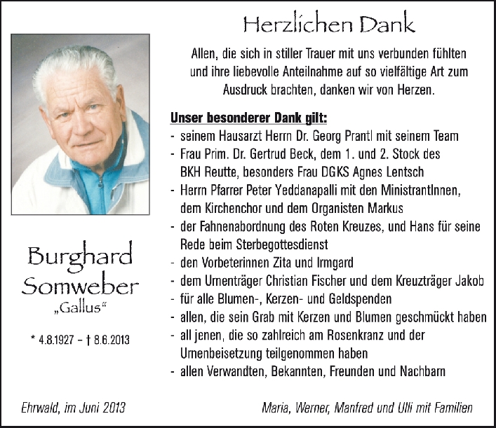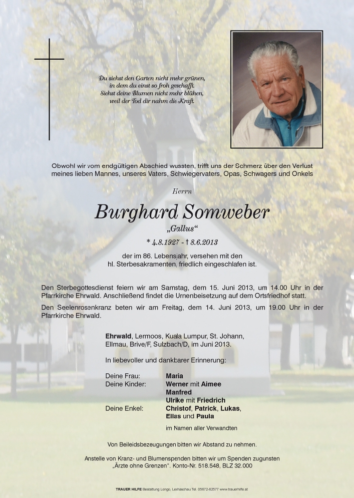 Kondolenzbuch für Burghard Somweber
