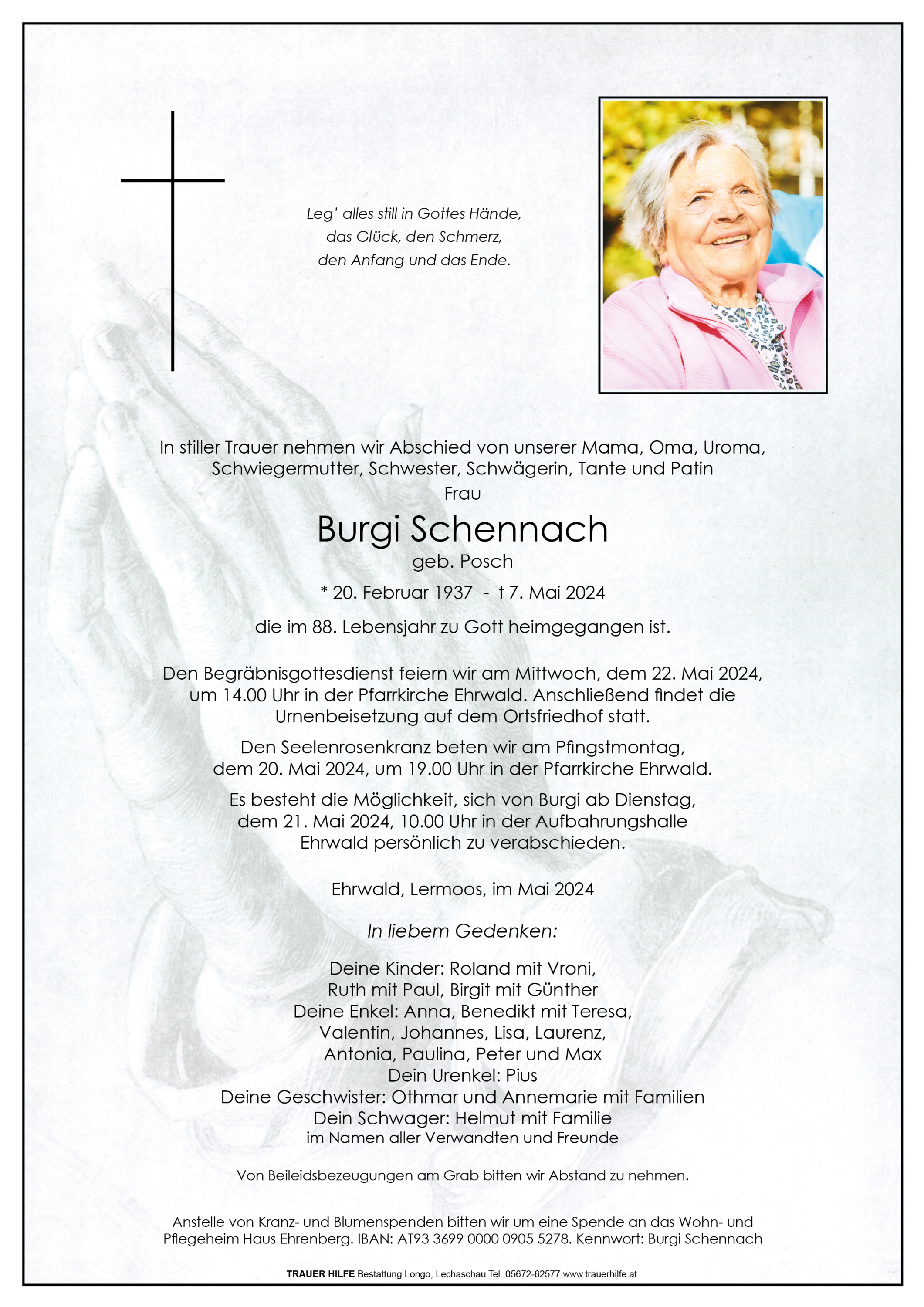 Kondolenzbuch für Burgi Schennach