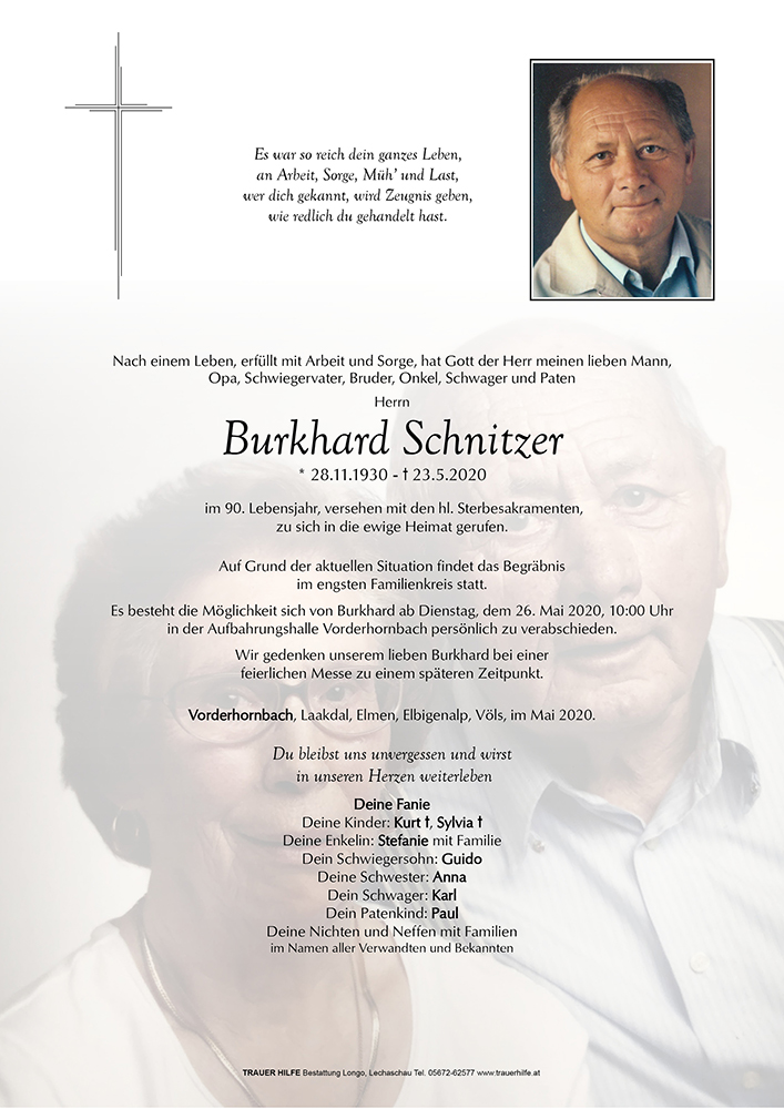 Kondolenzbuch für Burkhard Schnitzer