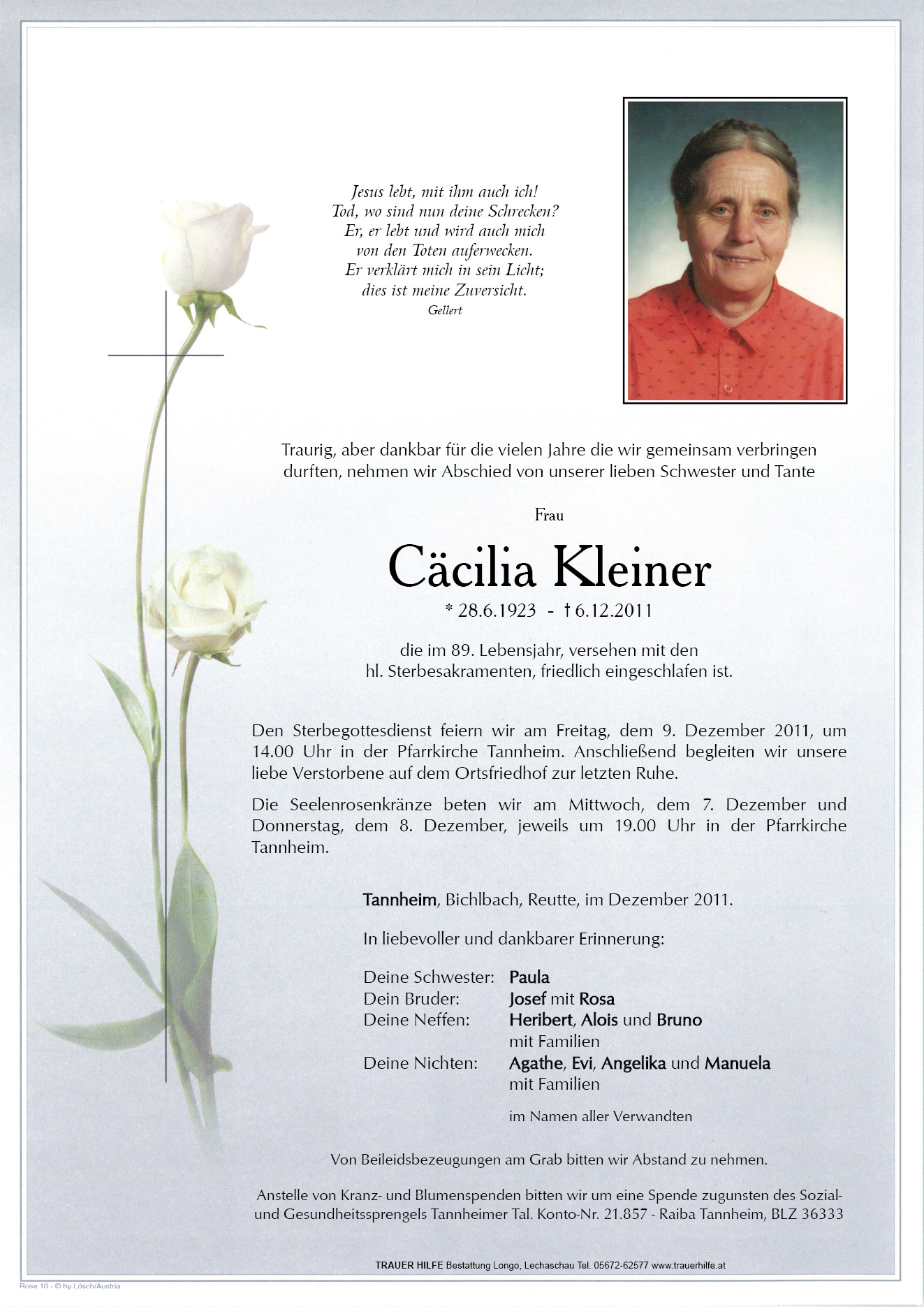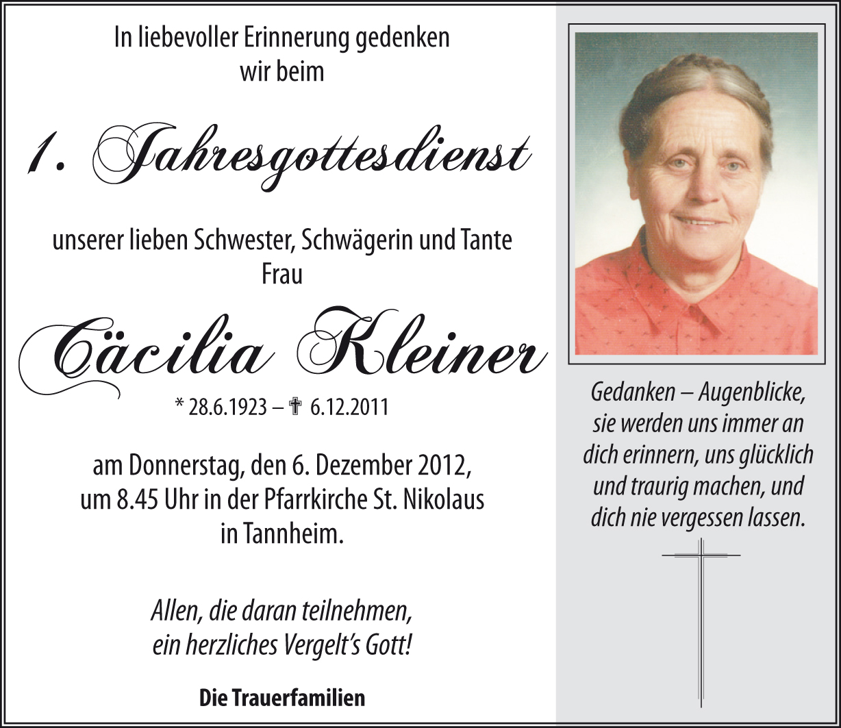 Gedenkkerzen für Cäcilia Kleiner