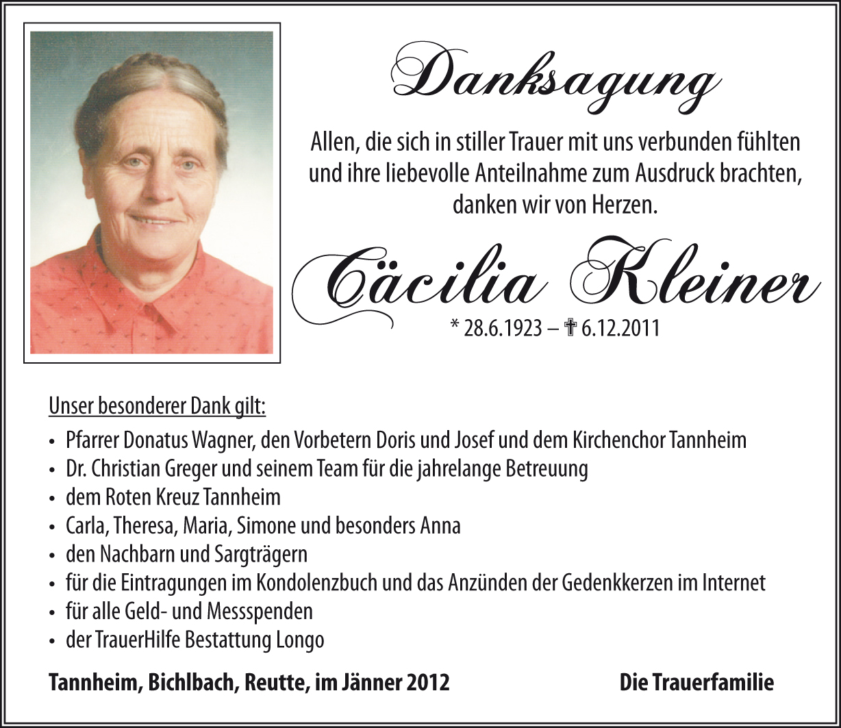 Kondolenzbuch für Cäcilia Kleiner