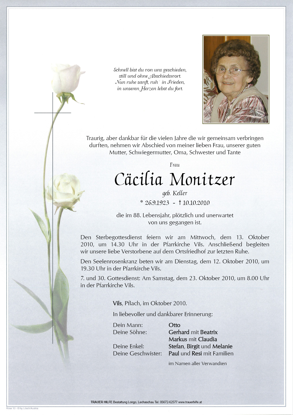 13.12.1901 10.10.2010 Vils Cäcilia Monitzer Action Parte Sterbebild Gedenkkerzen Kondolenzen Parte Sterbebild Gedenkkerzen Kondolenzen Parte herunterladen Sterbebild herunterladen Gedenkkerzen für Cäcilia Monitzer 2 Einträge Kerze anzünden In stiller Erinnerung Ein Licht für die Ewigkeit! Ihre Gedenkkerze fürCäcilia Monitzer Ihr Name* Farbe auswählen Ihre Nachricht oder Name* E-Mail-Adresse* Mit dem Klicken auf "Kerze anzünden" erklären Sie sich mit unseren Datenschutzbestimmungen einverstanden. Kondolenzbuch für Cäcilia Monitzer 0 Einträge Kondolenz verfassen Ihr Abschiedsgruß an Cäcilia Monitzer Ihr Name* E-Mail-Adresse* Ihre Nachricht* Mit dem Klicken auf "Gruß absenden" erklären Sie sich mit unseren Datenschutzbestimmungen einverstanden.
