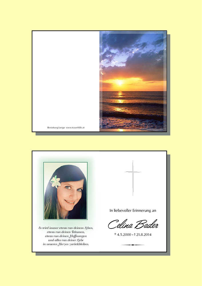 Lieber Gott! Wir wissen, dass Celina, die von uns uns gegangen ist, jetzt bei dir im Himmel wohnt. Wir bitten dich, gut für sie zu sorgen, sodass deine Liebe sie trägt und und inspiriert. Bitte schicke ihr zusätzlich Engel, die ihr helfen, sich auf wundervolle und glückliche Weise im Himmel einzugewöhnen. Bitte schicke auch Markus, Sandra und allen Trauernden zusätzlich Engel, die uns allen helfen, unsere Traurigkeit und unseren Schmerz zu lindern. Heile unsere schwermütigen Gefühle, damit alle zu dem Leben zurückkehren können, von dem wir wissen, dass Celina es sich für uns wünscht. Bitte sende uns ein Zeichen des Himmels, damit wir wissen, dass unsere geliebte Celina sicher bei dir geborgen ist.