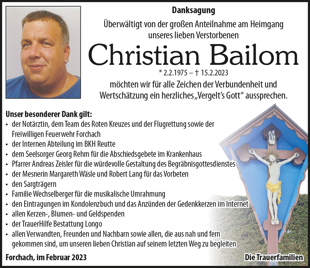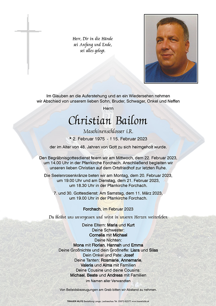 Kondolenzbuch für Christian Bailom