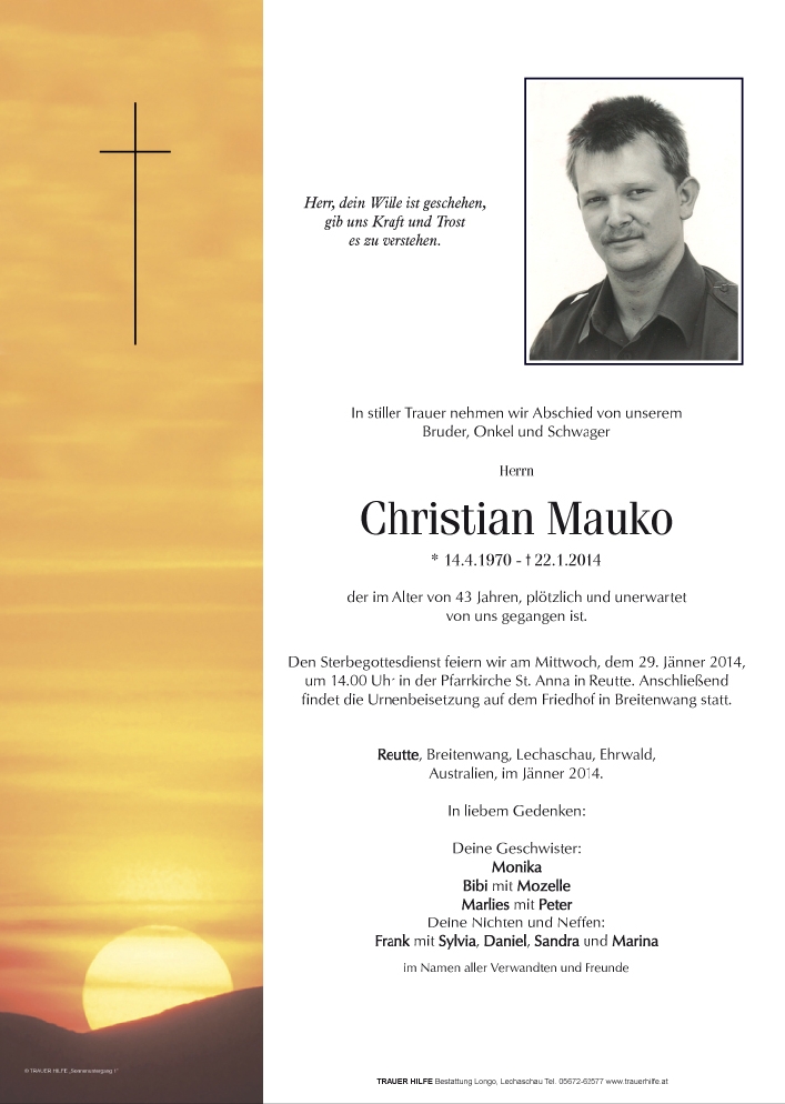 Kondolenzbuch für Christian Mauko