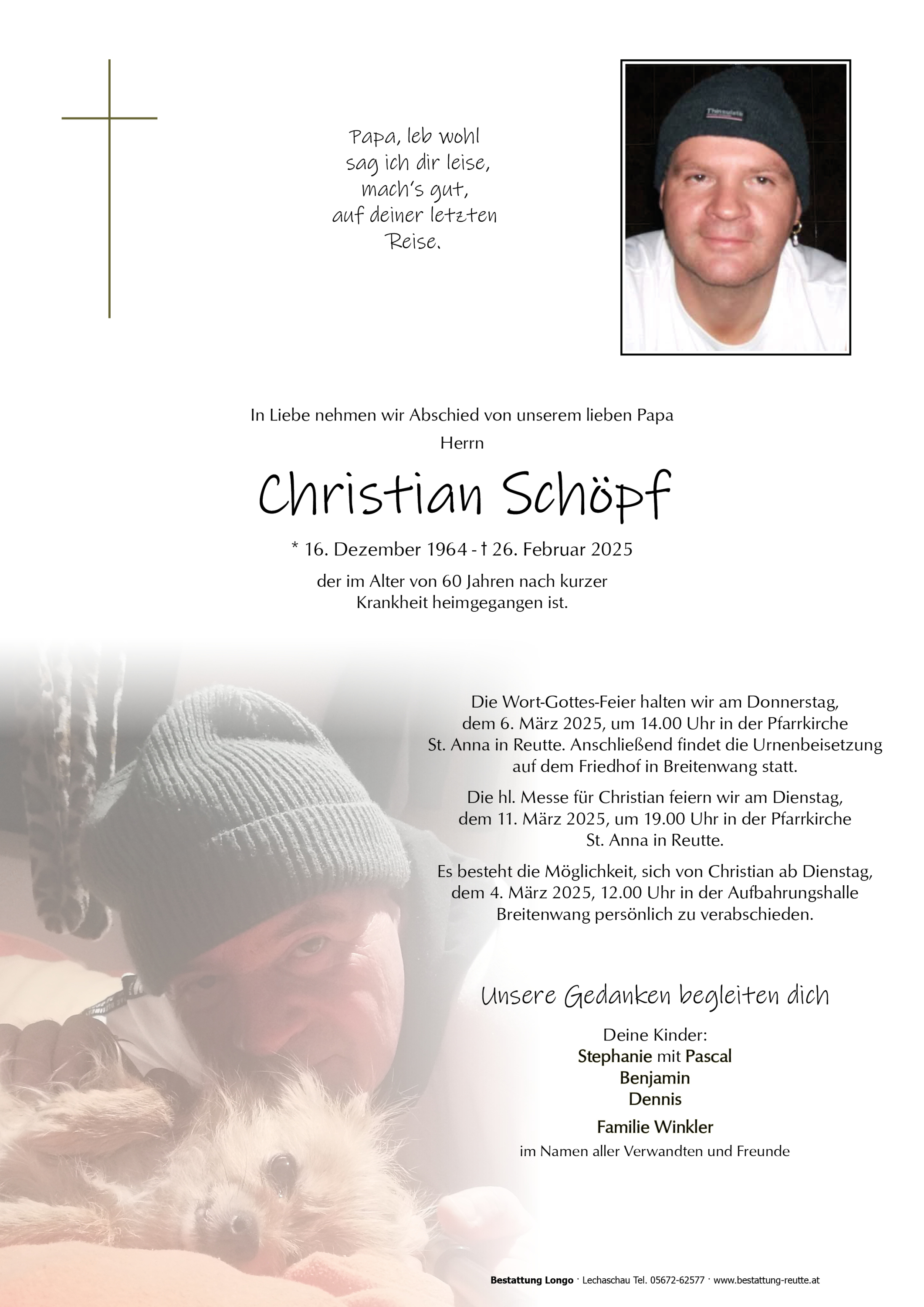 Servus christian warst ein toller Chef, hoffe dir gehts jetzt gut da wo du jetzt bist Ein letzter Gruß Andreas