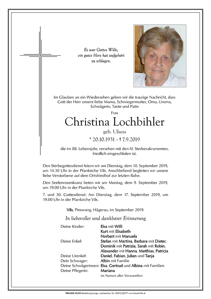 Aufrichtige Anteilnahme in dieser schweren Zeit, entbietet Köchl Sonja mit Familie