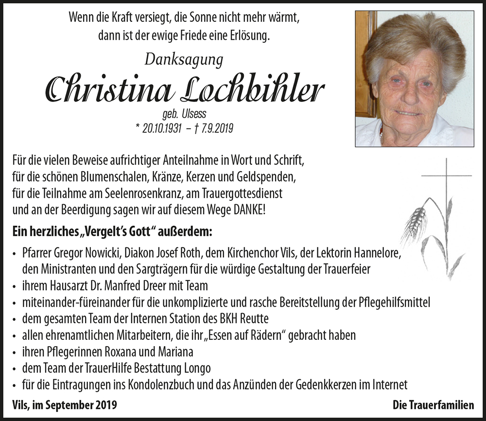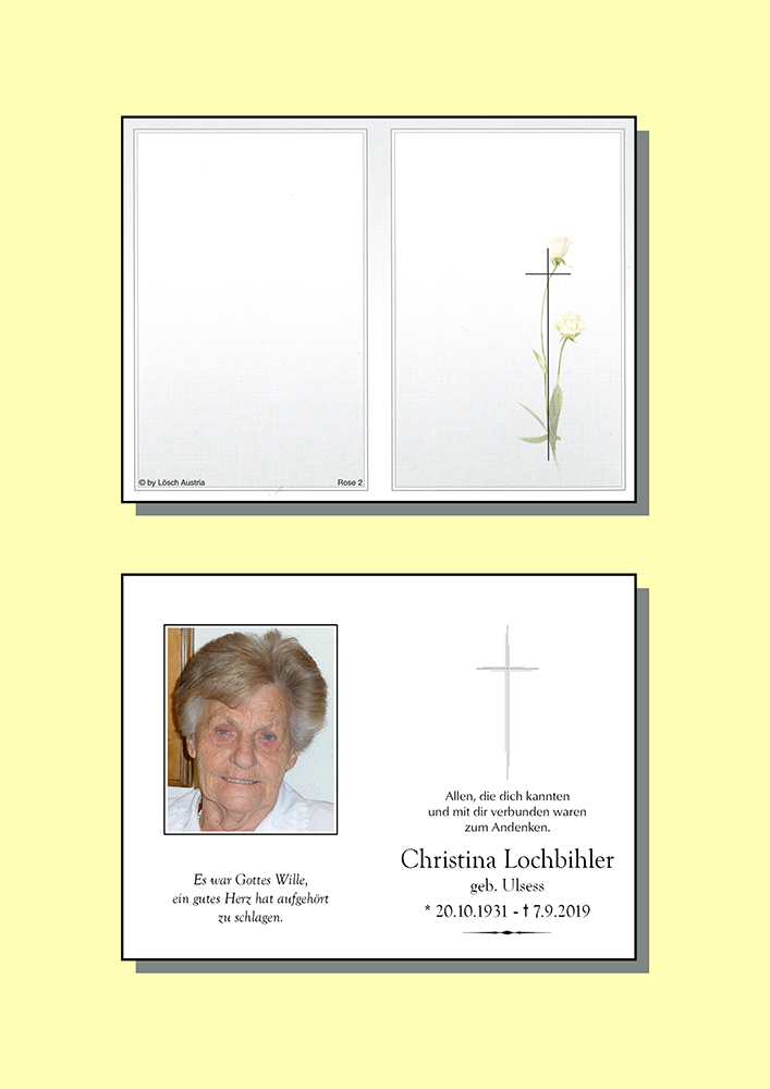 Liebe Oma, liebe Uroma, wir werden dich immer in unseren Herzen tragen. Wir vermissen dich.
