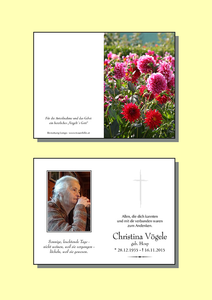 Meine Kräfte sind zu Ende, nimm mich, Herr, in deine Hände. Unser aufrichtiges Beileid!