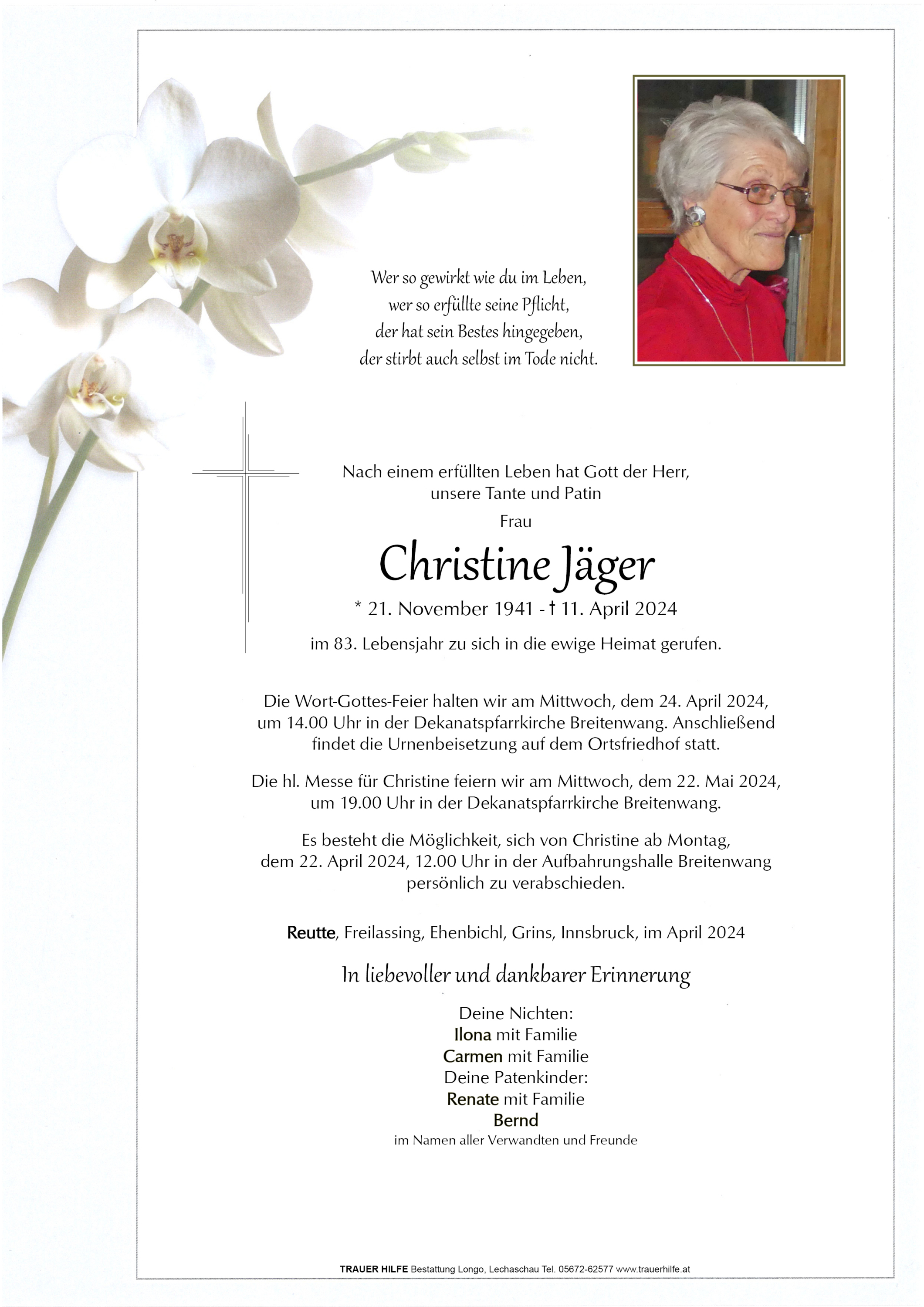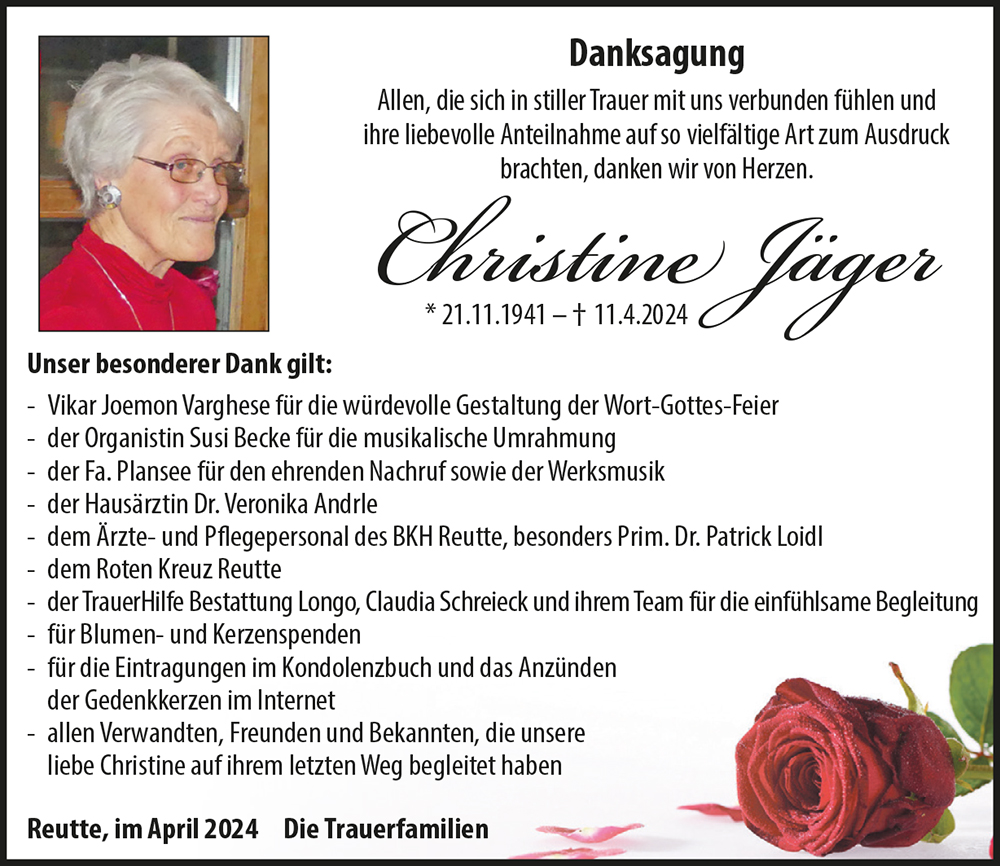 Wir wussten nichts von deiner schweren Erkrankung und hofften immer noch auf einen Anruf von dir, wieder einmal mit ins Tiroler Landestheater fahren zu können. Nun aber darfst du von Gott das Danke erfahren für die viele Freude, die du uns durch Jahrzehnte gemacht hast. Du hast alle Fahrten hervorragend organisiert, hast Karten besorgt, wieder umgetauscht, neue bestellt. Es hat immer alles geklappt! Wir brauchten uns um gar nichts kümmern.