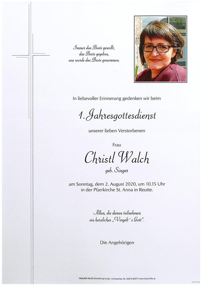 Kondolenzbuch für Christine Walch