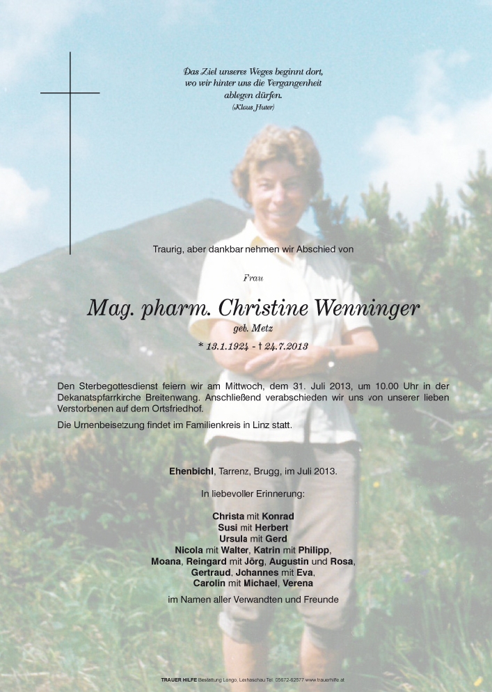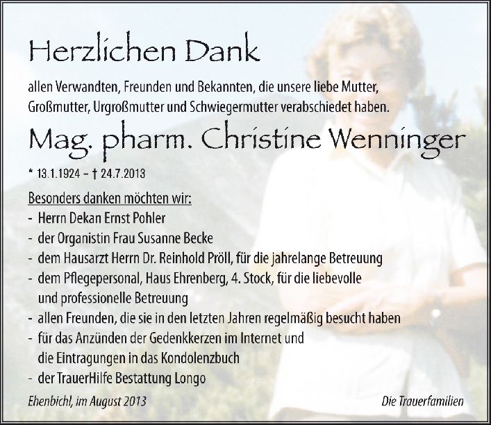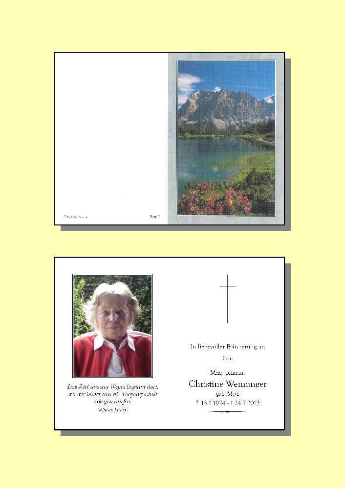 In dankbarer Erinnerung an unsere Gymnasialjahre denkt an Euch und Eure liebe verstorbene Mutter- möge Sie glücklich leben im Reich Gottes.-