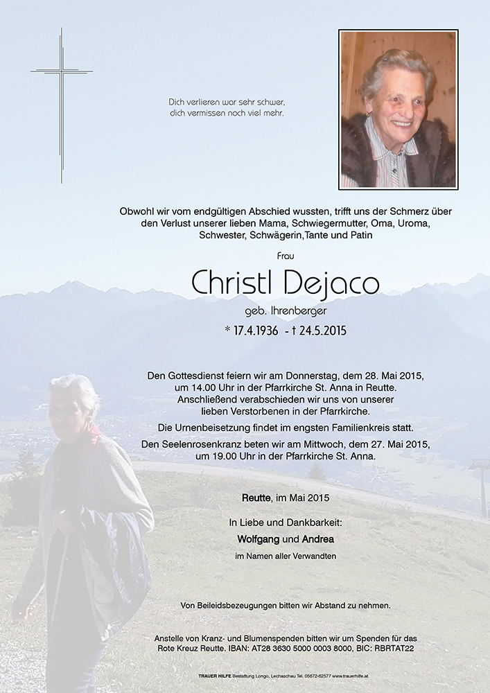 Mein Aufrichitrigistes Mitgefühl für den Verlust Deiner Mutter.Christl war eine starke Frau, und ich bewunderte sie.
