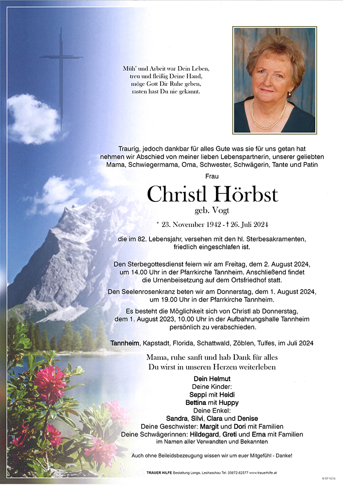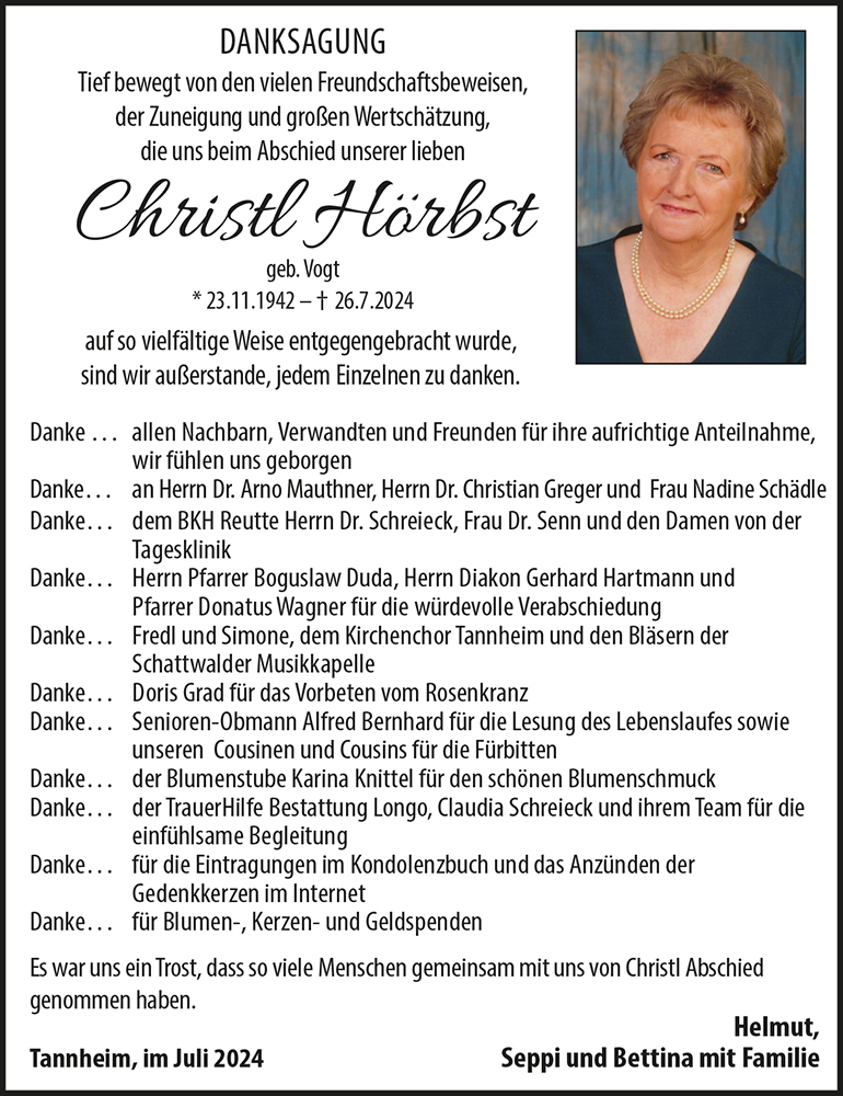 Kondolenzbuch für Christl Hörbst