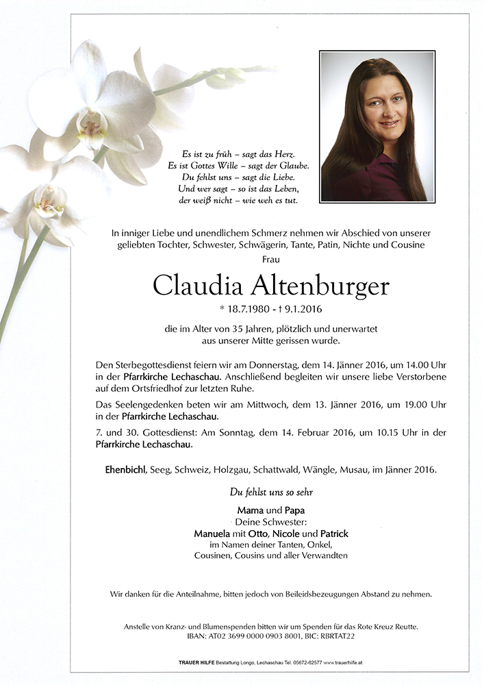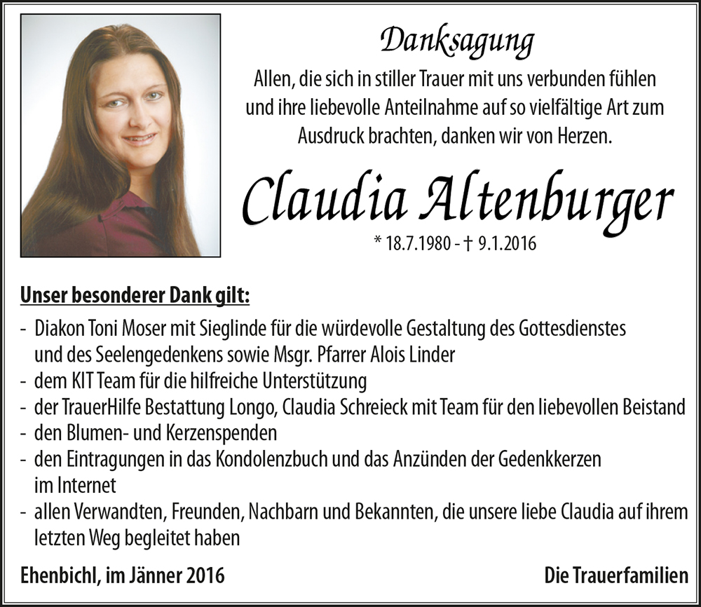 Kondolenzbuch für Claudia Altenburger