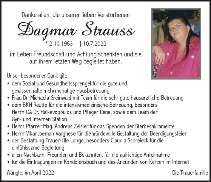 Unser aufrichtiges Beileid zum Tode von Dagmar