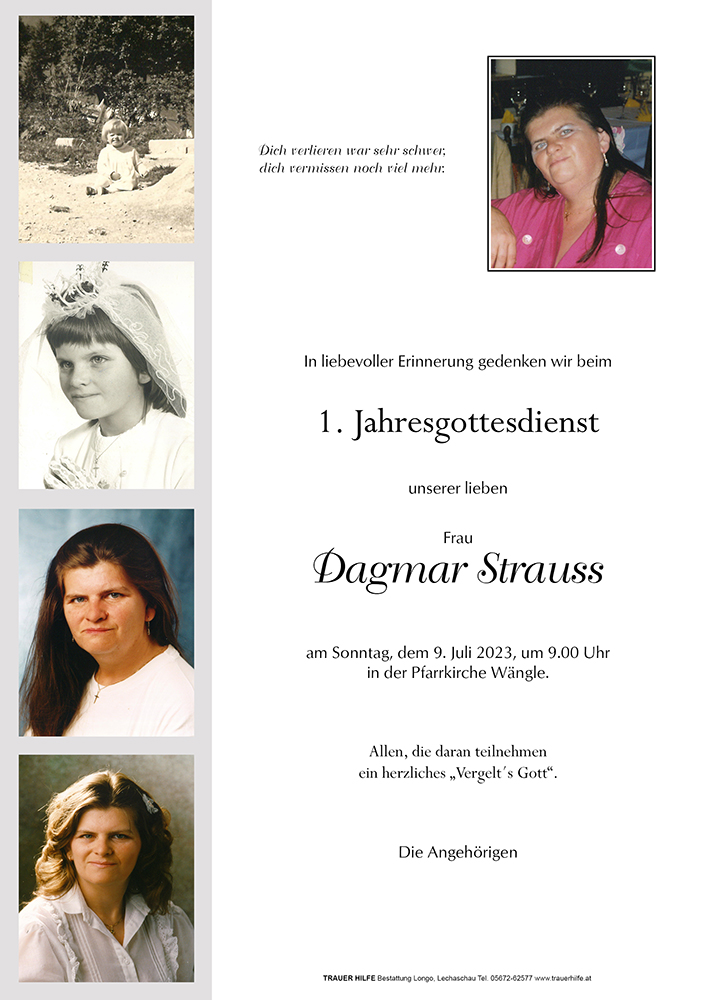 Die Erinnerung an einen Menschen geht nie verloren, wenn man ihn im Herzen behält. Dagmar , du hast sicherlich ein ganz besonders feines Platzerl erhalten. Wir senden der Familie ganz viel Kraft. Susanne und Herbert Gstrein
