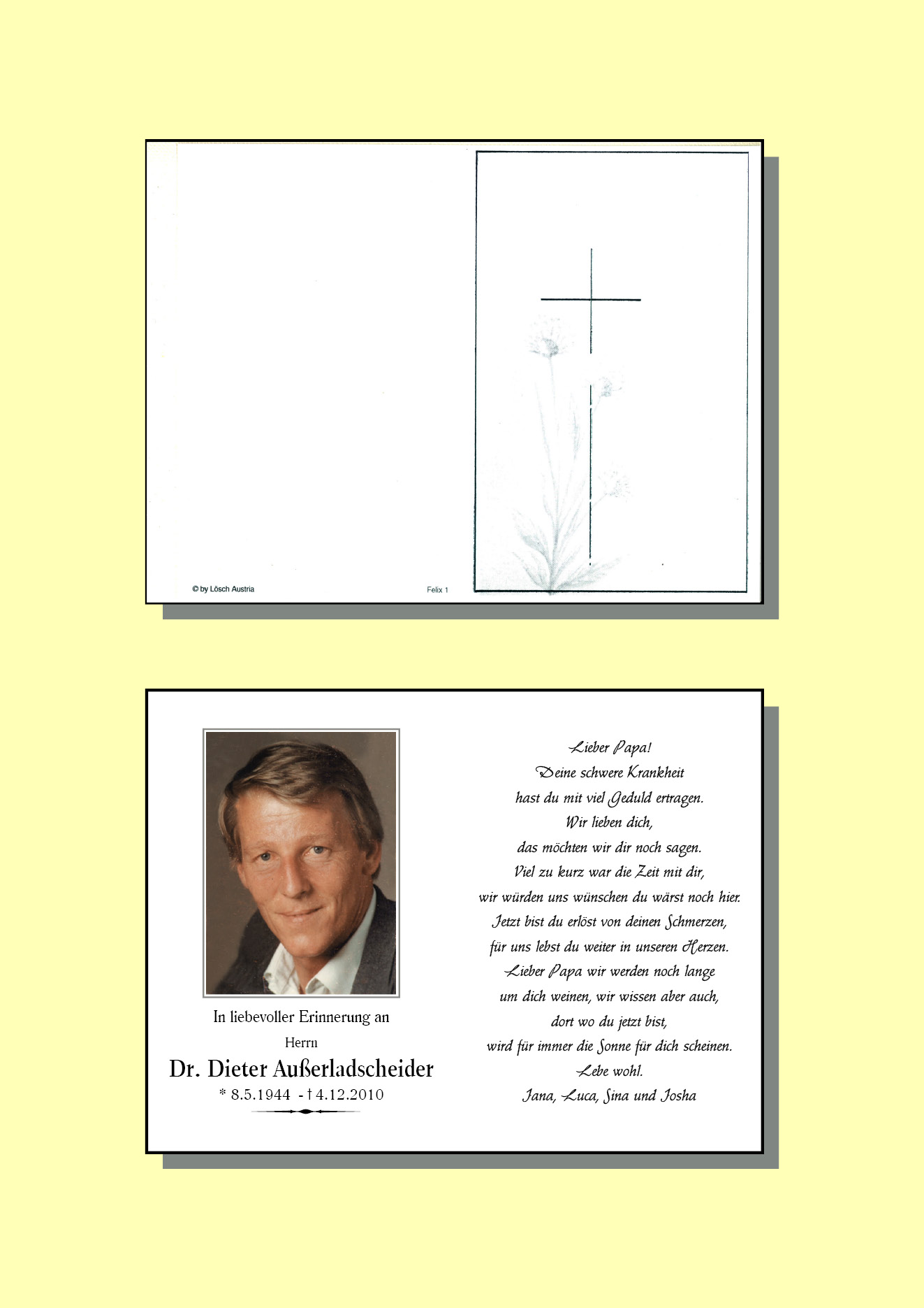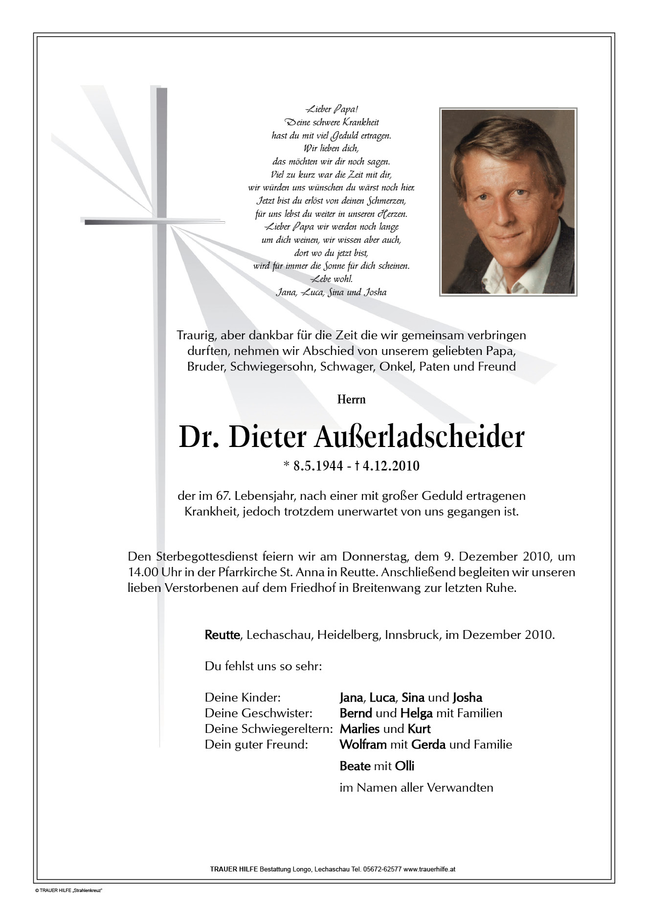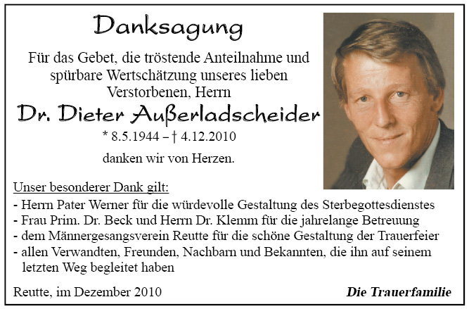 13.12.1901 04.12.2010 Reutte Dieter Außerladscheider Action Parte Sterbebild Gedenkkerzen Kondolenzen Danksagung Parte Sterbebild Gedenkkerzen Kondolenzen Danksagung Parte herunterladen Sterbebild herunterladen Gedenkkerzen für Dieter Außerladscheider 12 Einträge Kerze anzünden Für Dich Fam. Günter und Gitti Muglach Fam. Günter und Gitti Muglach Fam. Günter und Gitti Muglach Oliver und Beate günther grass Fam. Günter und Gitti Muglach Fam. Günter und Gitti Muglach Fam. Günter und Gitti Muglach Fam. Günter und Gitti Muglach Fam. Günter und Gitti Muglach Fam. Günter und Gitti Muglach Ihre Gedenkkerze fürDieter Außerladscheider Ihr Name* Farbe auswählen Ihre Nachricht oder Name* E-Mail-Adresse* Mit dem Klicken auf "Kerze anzünden" erklären Sie sich mit unseren Datenschutzbestimmungen einverstanden. Kondolenzbuch für Dieter Außerladscheider 0 Einträge Kondolenz verfassen Ihr Abschiedsgruß an Dieter Außerladscheider Ihr Name* E-Mail-Adresse* Ihre Nachricht* Mit dem Klicken auf "Gruß absenden" erklären Sie sich mit unseren Datenschutzbestimmungen einverstanden. Danksagung herunterladen