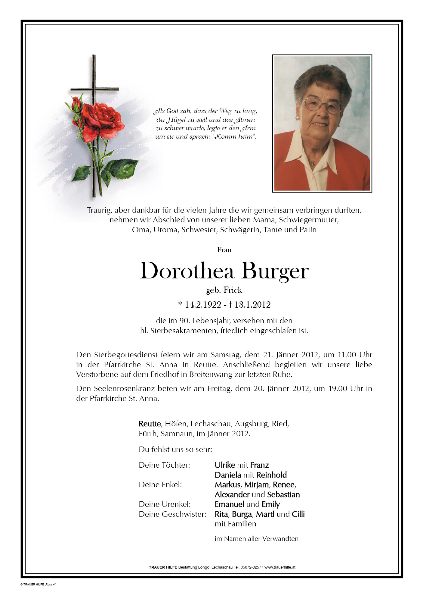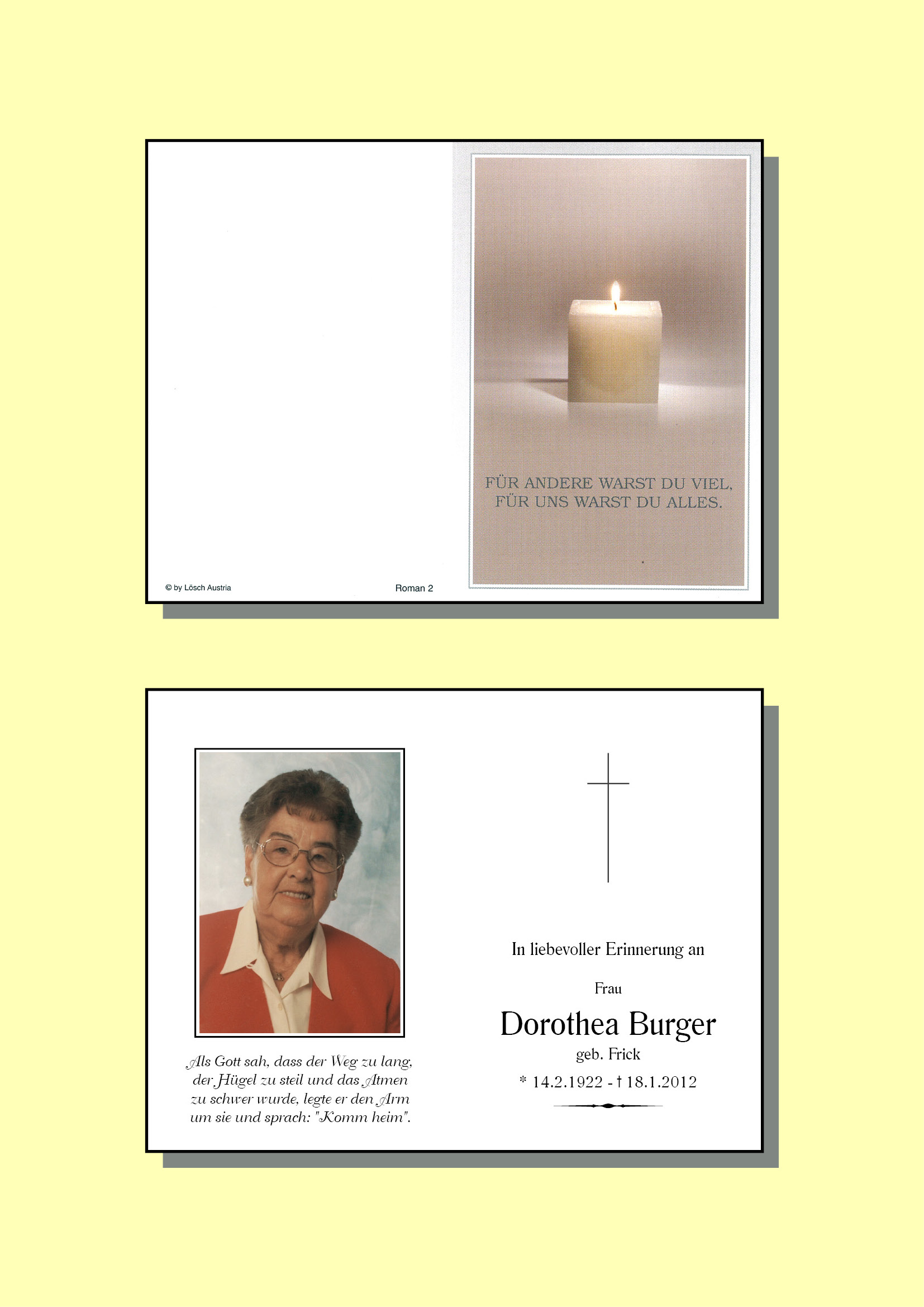 Anlässlich des Heimganges von eurer lieben Mama und Oma möchten wir euch unsere aufrichtige Anteilnahme aussprechen. Auch uns macht ihr Tod sehr traurig. Dora war eine "wahre Lady" und eine wunderbare Frau. Wir werden sie niemals vergessen und wünschen euch viel Kraft in dieser schweren Zeit.
