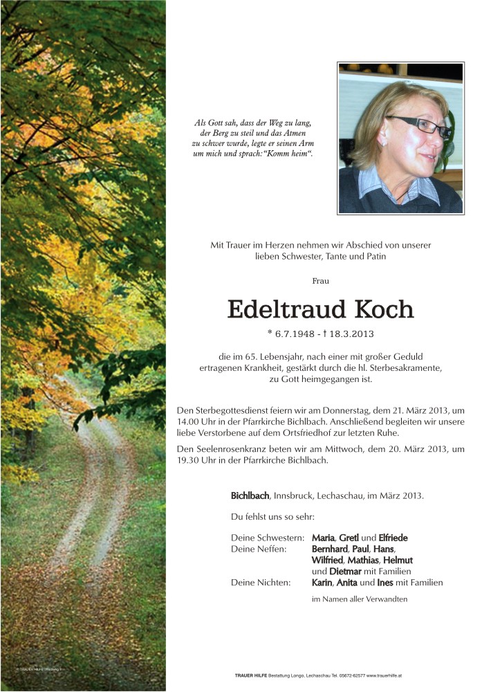 Kondolenzbuch für Edeltraud Koch