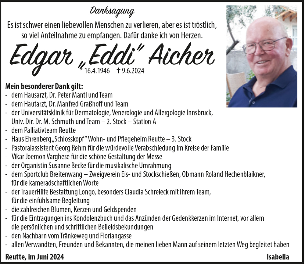Mit tiefem bedauern habe ich vom Tod von Eddi erfahren