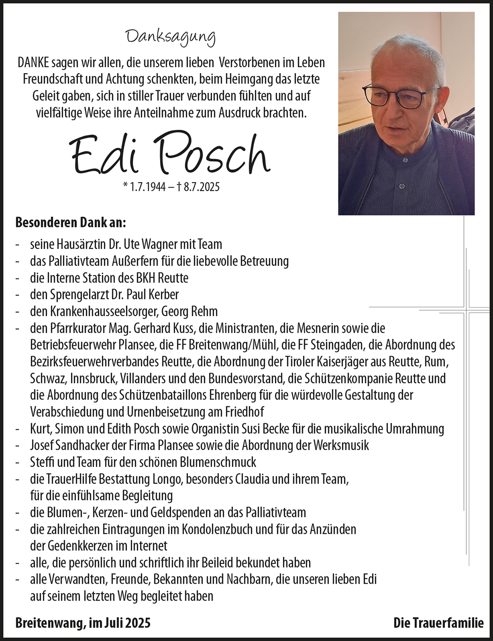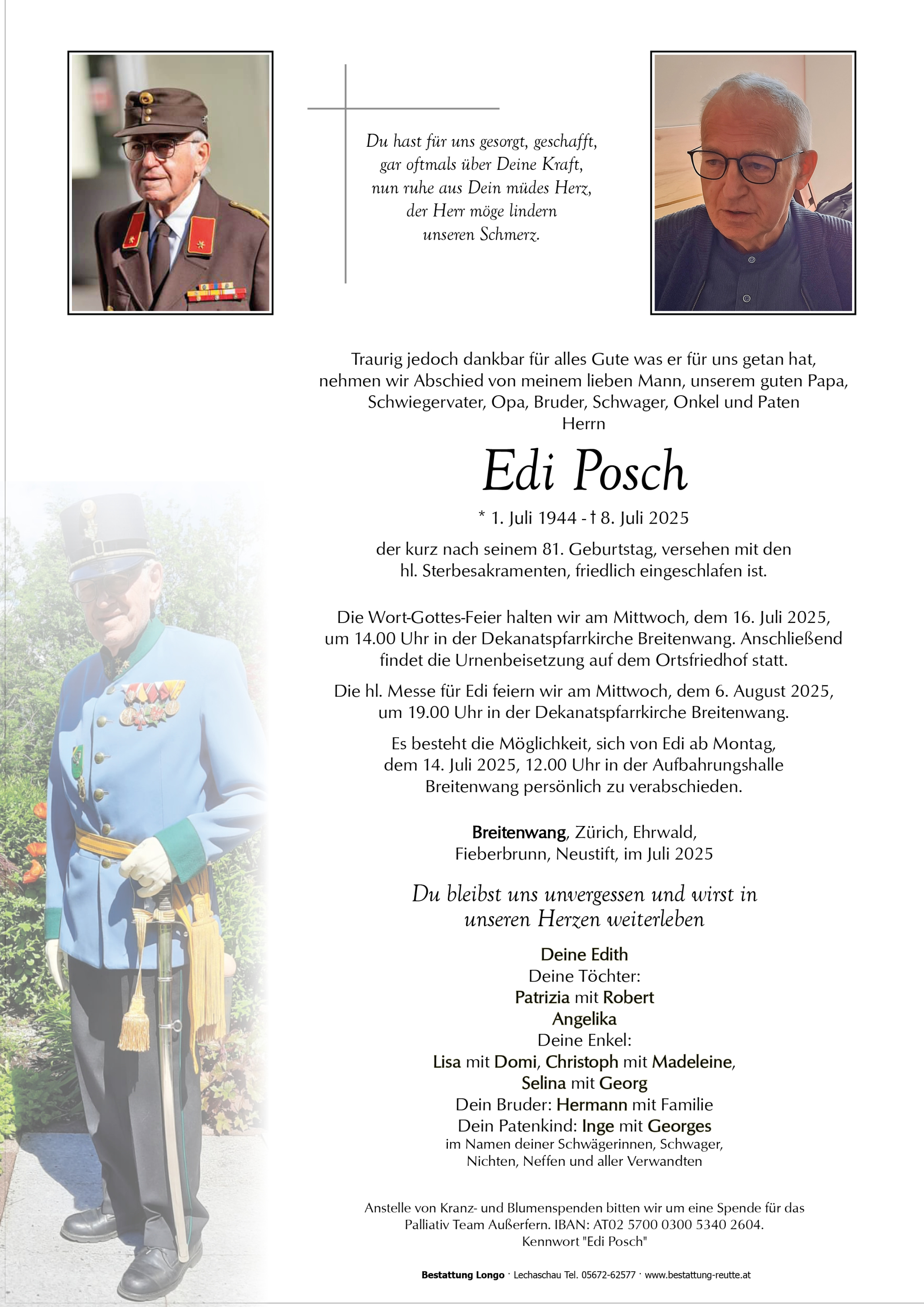 Es war ein langer Abschied, doch durch deine Krankheit, war dein Abschied eine Erlösung. Pfiati Edi!