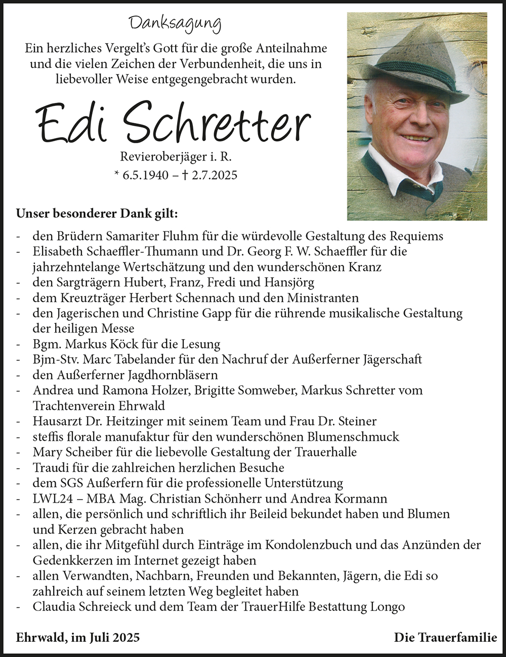 Kondolenzbuch für Edi Schretter