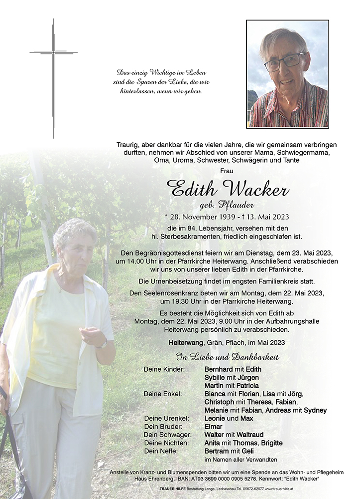 Edith Ruhe in Frieden Gustl u. Waltraud