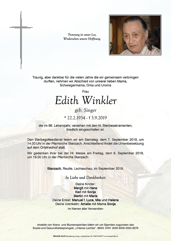 Kondolenzbuch für Edith Winkler