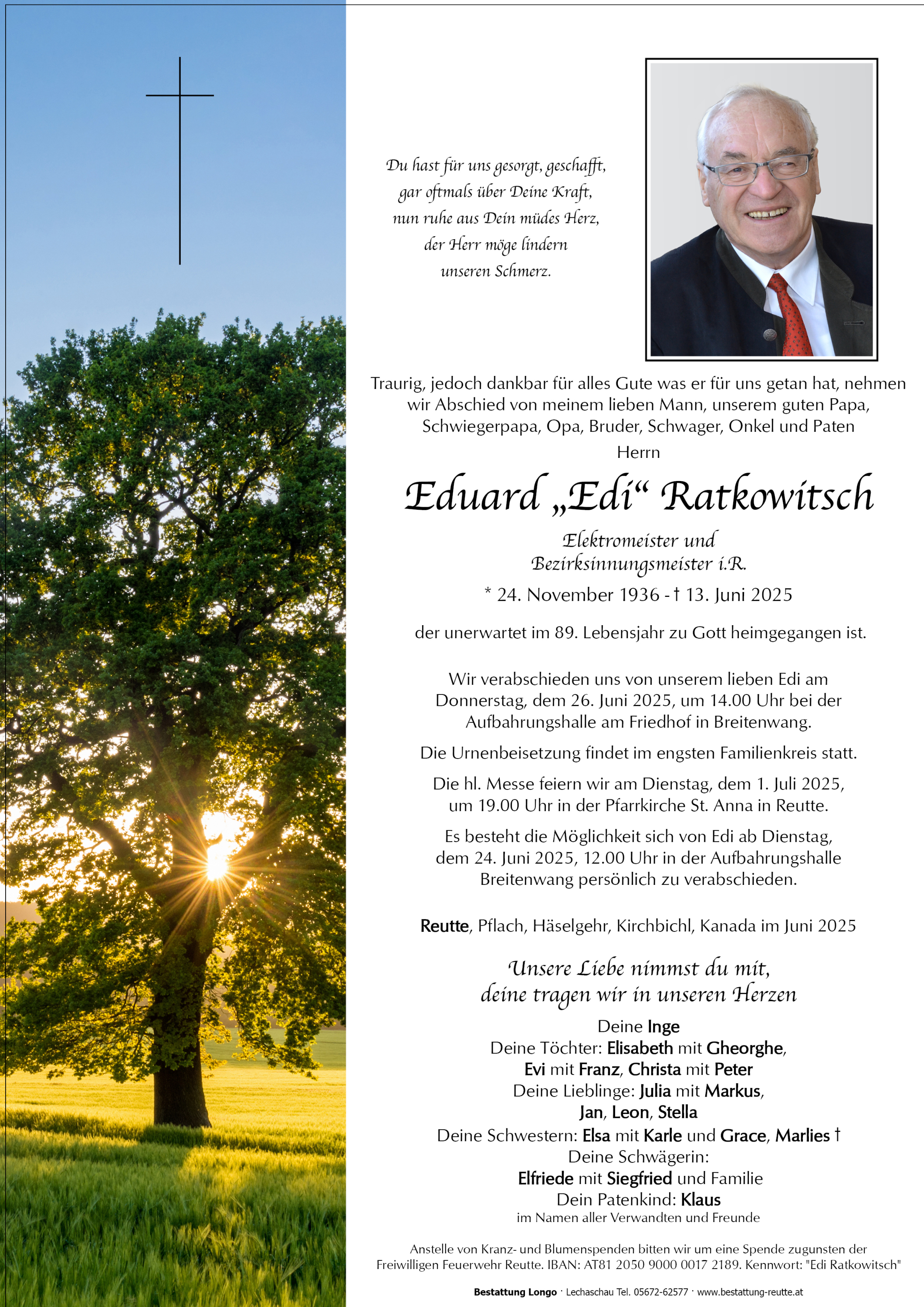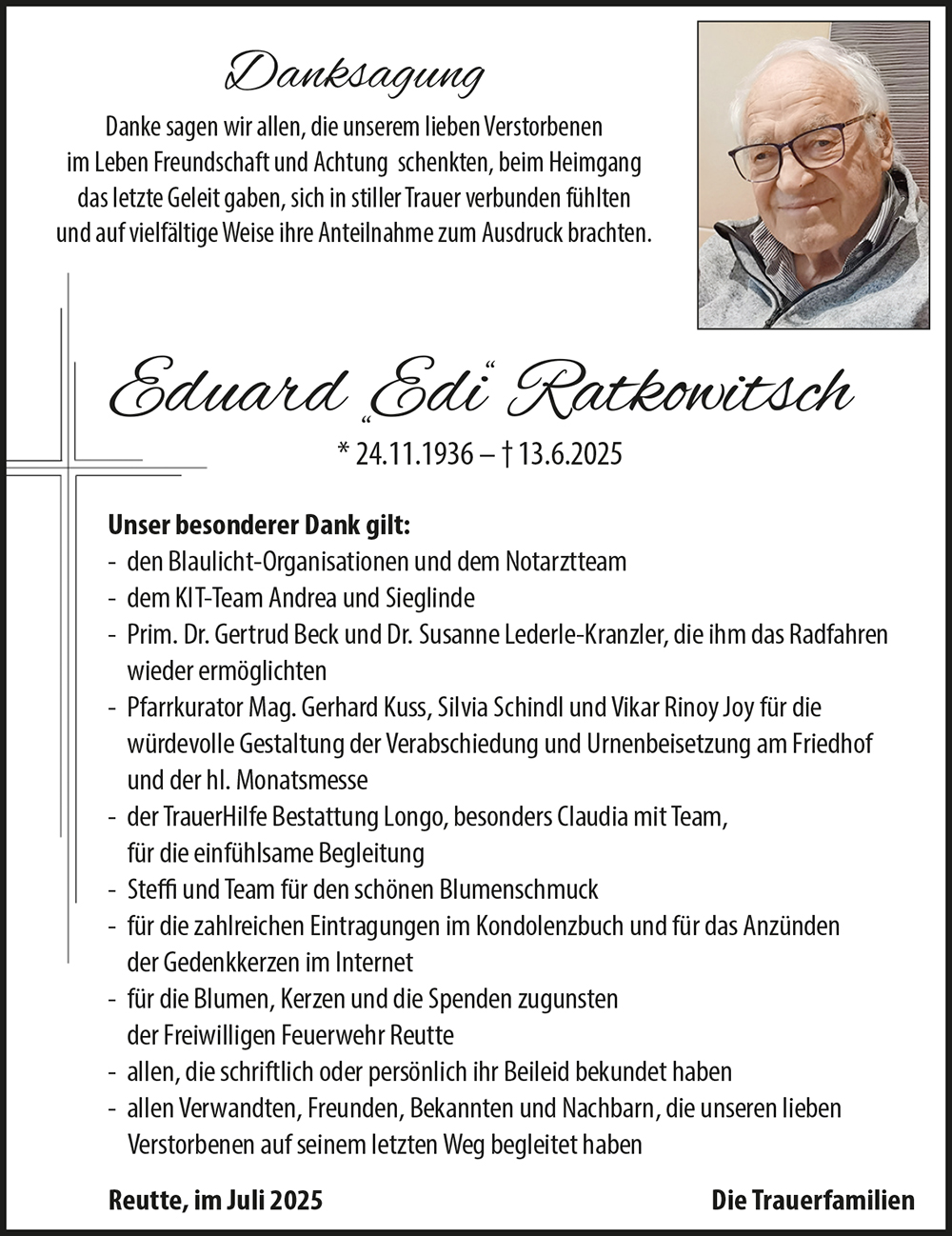 Wir dürfen euch unser aufrichtiges Beileid zum Heimgang von Edi entbieten!