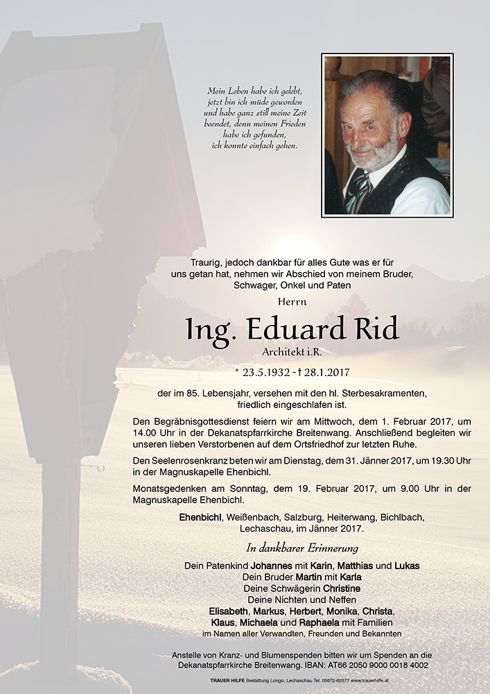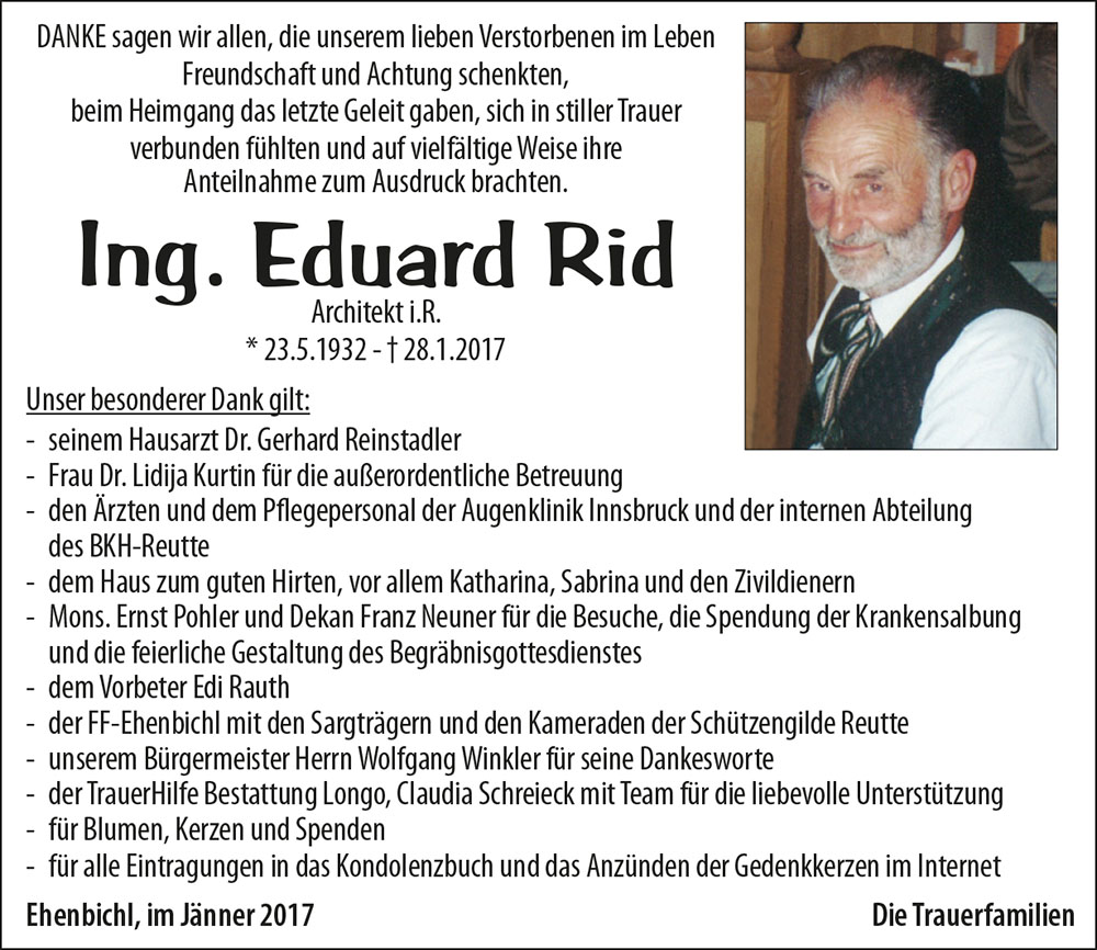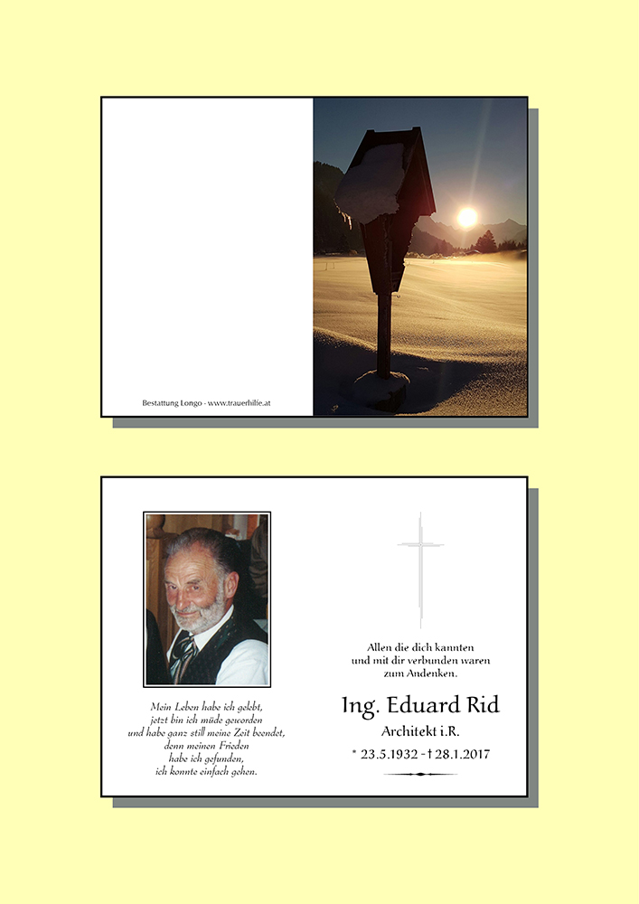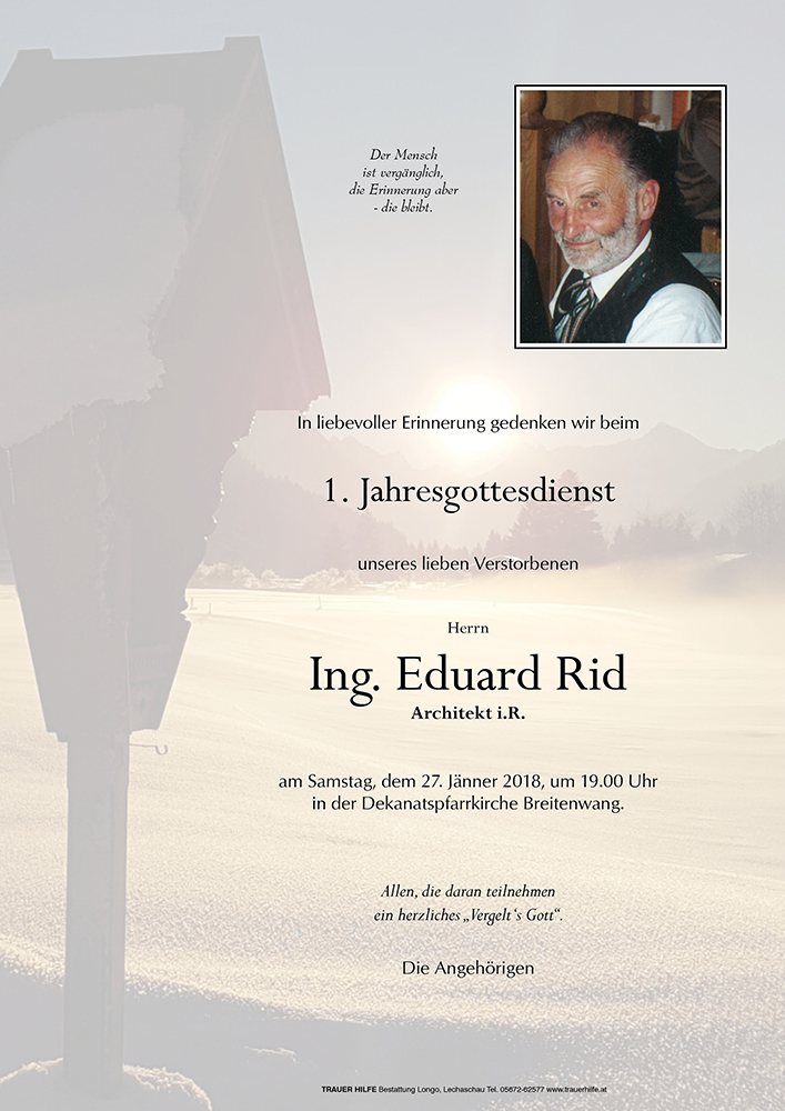 Kondolenzbuch für Eduard Rid