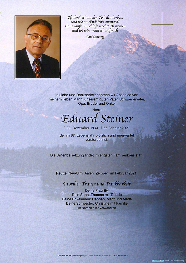 Wir möchten euch auf diesem Weg unser aufrichtiges Beileid aussprechen und fühlen in dieser schweren Zeit mit euch. Von Herzen ganz viel Kraft und Zuversicht entbieten euch Albin und Manuela mit Kinder!