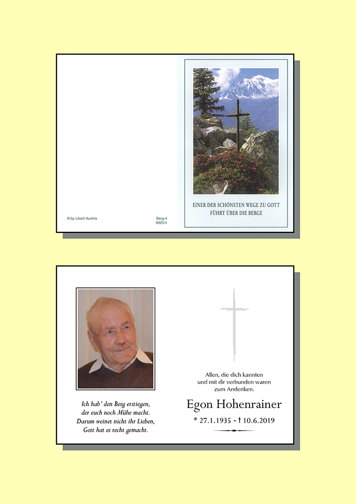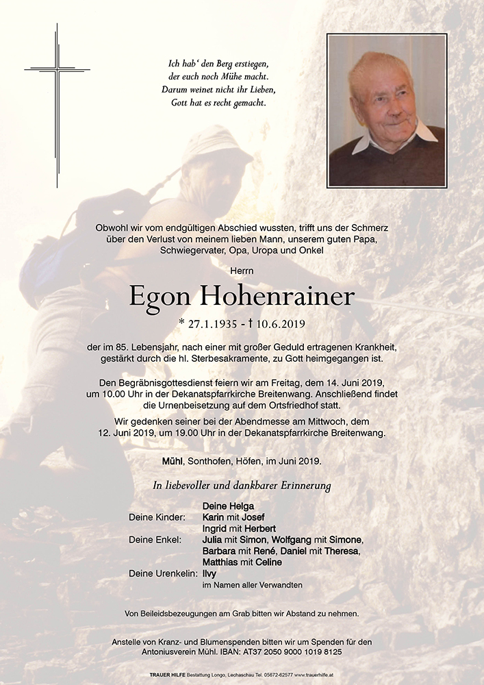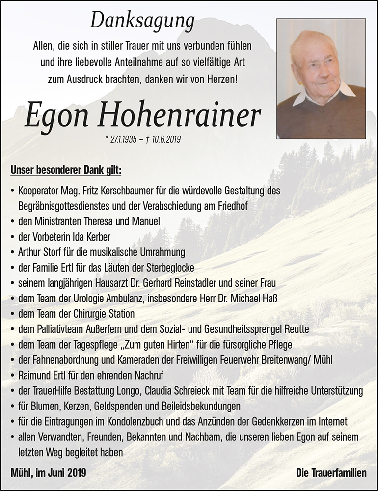 Kondolenzbuch für Egon Hohenrainer