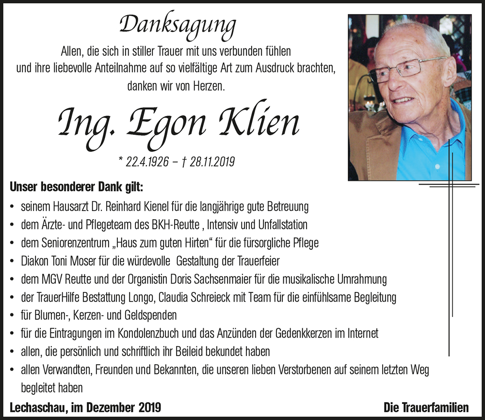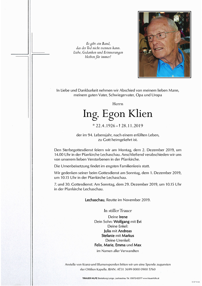 Kondolenzbuch für Egon Klien