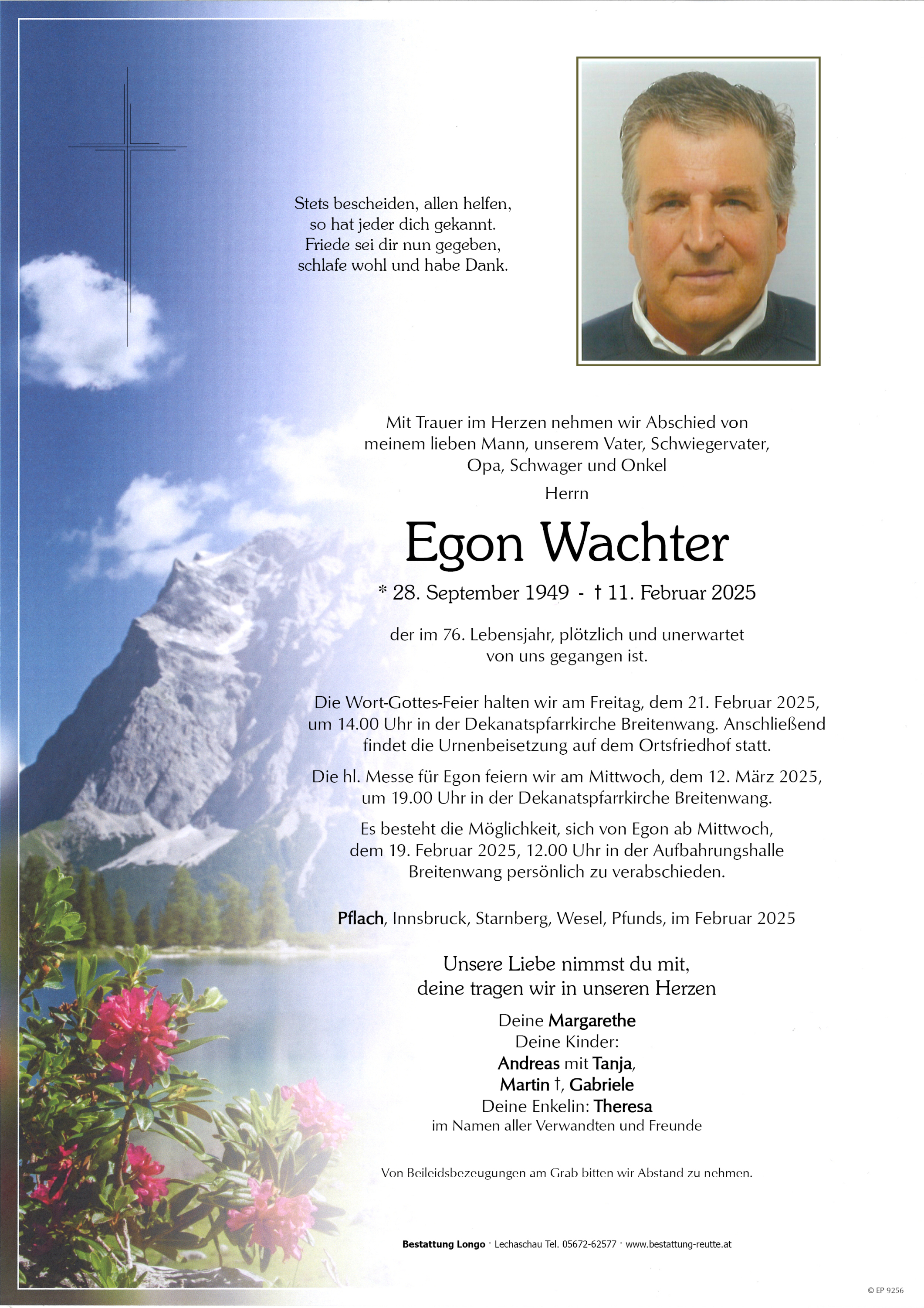Aufrichtige Anteilnahme! Günter Kienel, Imst