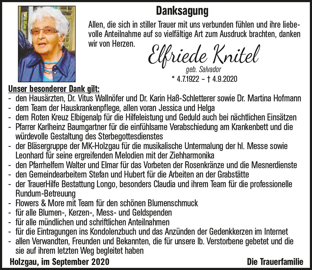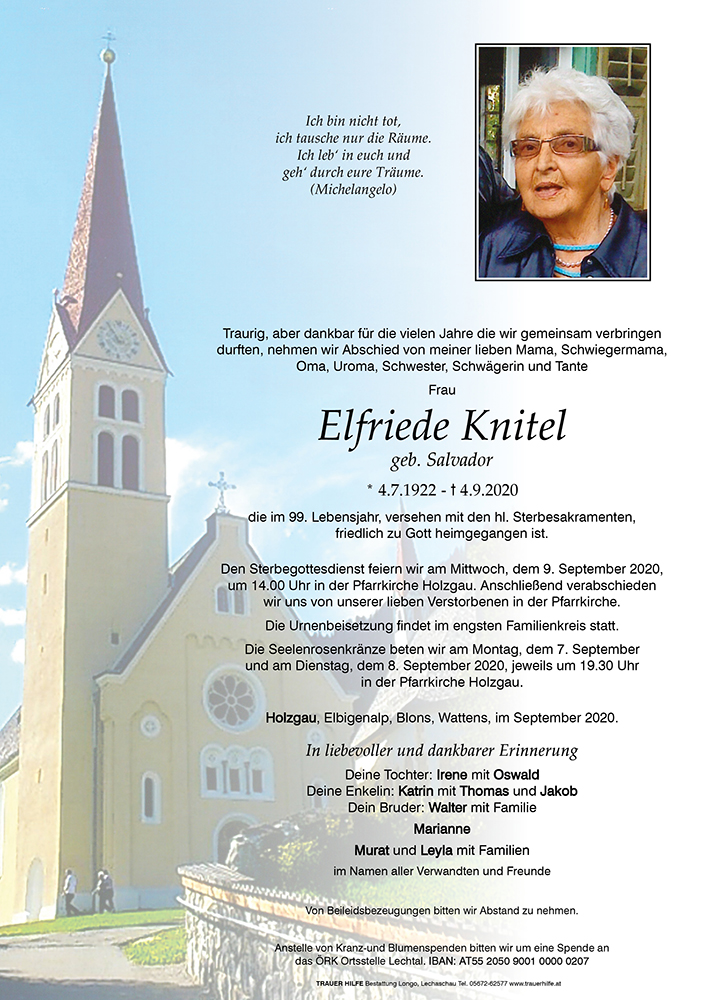 Kondolenzbuch für Elfriede Knitel