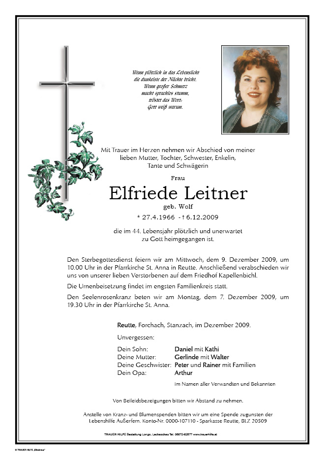 13.12.1901 06.12.2009 Reutte Elfriede Leitner Action Parte Gedenkkerzen Kondolenzen Parte Gedenkkerzen Kondolenzen Parte herunterladen Gedenkkerzen für Elfriede Leitner 28 Einträge Kerze anzünden Denke oft an dich Petra Denke oft an dich Petra Denke oft an dich Petra Denke oft an dich Petra Petra In ewiger Erinnerung Klaudia Denke oft an dich Petra Petra In ewiger Erinnerung Klaudia Denke oft an dich Petra In ewiger Erinnerung Sabine + Andrea Fam. Klaudia Rief Sabine Licht und Frieden Stefan Wex Sabine Sabine sabine für alle, denen du fehlst Sabine sabine ich denke an dich ein Licht für Dich Sabine Sabine Fam. Günter und Gitti Muglach Gitti mit Familie Ihre Gedenkkerze fürElfriede Leitner Ihr Name* Farbe auswählen Ihre Nachricht oder Name* E-Mail-Adresse* Mit dem Klicken auf "Kerze anzünden" erklären Sie sich mit unseren Datenschutzbestimmungen einverstanden. Kondolenzbuch für Elfriede Leitner 0 Einträge Kondolenz verfassen Ihr Abschiedsgruß an Elfriede Leitner Ihr Name* E-Mail-Adresse* Ihre Nachricht* Mit dem Klicken auf "Gruß absenden" erklären Sie sich mit unseren Datenschutzbestimmungen einverstanden.