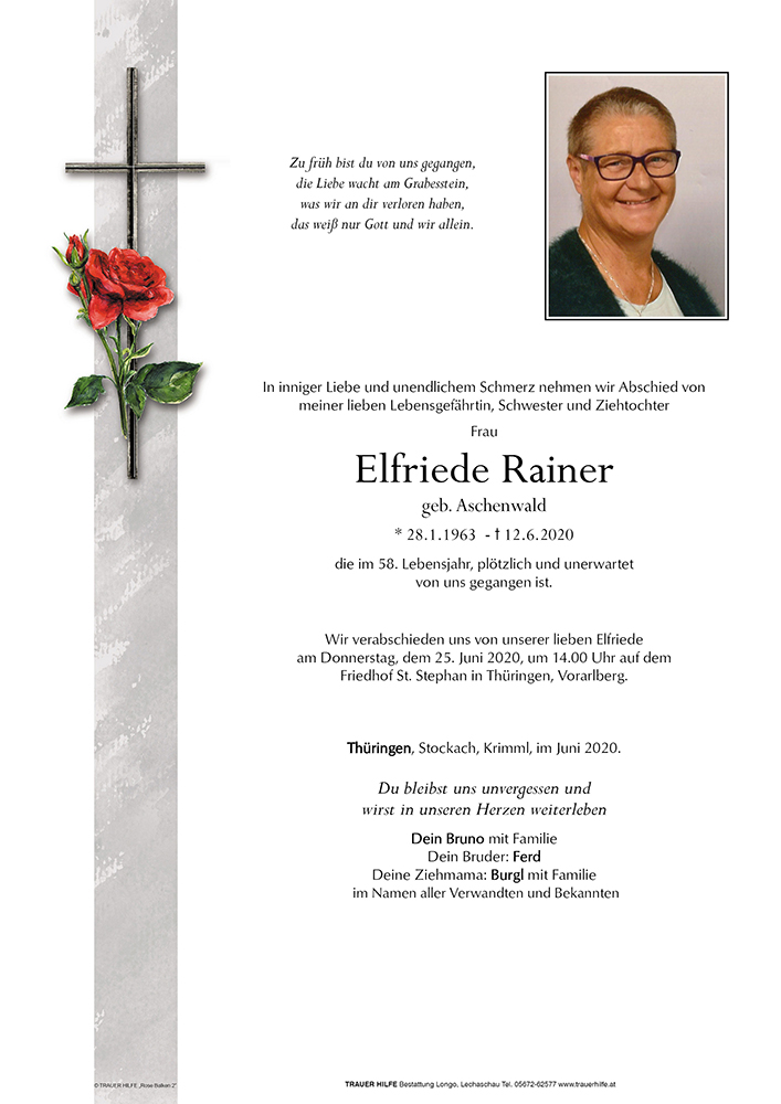Kondolenzbuch für Elfriede Rainer