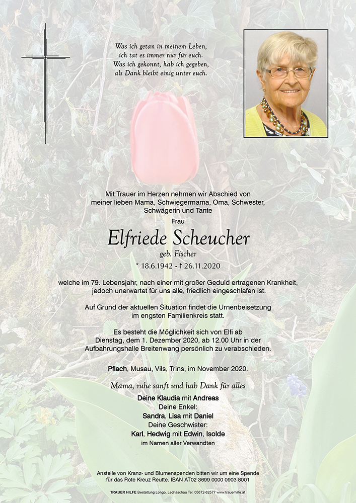 Kondolenzbuch für Elfriede Scheucher